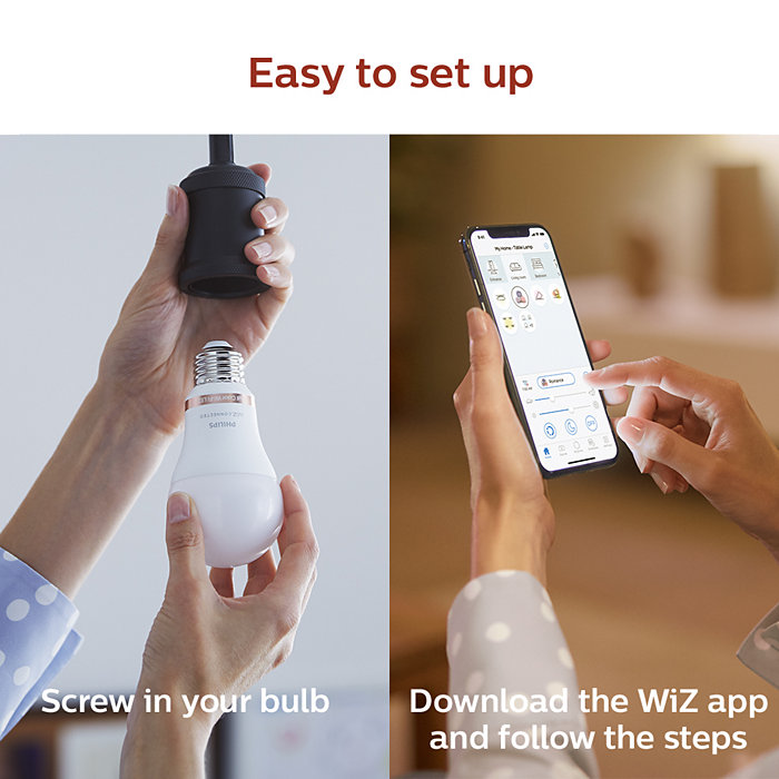 - Lưu ý: Đèn WiZ chỉ có thể dùng với Siri Shortcut chưa tương thích Apple HomeKit. Sử dụng đèn thông minh – Đơn giản hơn bạn nghĩ WiZ ConnectedLight – mang ánh sáng thông minh đến mọi căn nhà. Là một người “anh em” với đèn Philips Hue. WiZ cũng sẽ được biết tới với sự đơn giản trong việc sử dụng và lắp đặt. Bóng đèn WiZ Tunable White and Color E27 là một trong những sản phẩm nối bật đó. Bóng đèn thông minh 16 triệu màu WiZ sử dụng đui đèn E27, một dạng đui xoáy phổ biến ở Việt Nam. Bạn chỉ cần gắn đèn, mở ứng dụng WiZ và kết nối là đã có thể sử dụng. Không quá khó để thiết lập, bởi vì các bước được hướng dẫn cụ thể ngay trong ứng dụng. WiZ dùng kết nối WiFi 2,4GHz, do đó bạn không cần phải sử dụng thêm Hub trung tâm. Sau khi kết nối thành công, bạn có thể điều khiển các bóng đèn từ khắp mọi nơi, miễn là điện thoại bạn được kết nối với 3G/4G… “Mix your Color” – Hãy thể hiện sở thích với 16 triệu màu Đèn thông minh Tunable White and Color A60 sử dụng bảng màu sắc 16 triệu màu. Bạn sẽ được tự do chọn lựa các màu sắc ngay trong điện thoại. Phủ toàn bộ căn nhà bạn với các màu sắc yêu thích sẽ giúp bạn thấy thư giãn và hạnh phúc hơn. Bạn muốn ánh sáng đèn của mình sáng hơn để bạn có thể tập trung làm việc. Rất đơn giản, chỉ với ứng dụng WiZ, bạn có thể tăng/giảm độ sáng theo mong muốn của mình. Điều khiển đèn bằng giọng nói Khi bạn có một trong các thiết bị hỗ trợ Trợ lý ảo như: Google Nest Mini, Google Nest HUB, Amazon Echo Dot…Bạn hoàn toàn có thể sử dụng để điểu khiển đèn WiZ Lightstrip bằng giọng nói. Chỉ cần liên kết tài khoản của bạn với các nền tảng sẵn có. Vậy là bạn đã có thể sử dụng giọng nói của mình để điều khiển từ xa. So với Philips Hue, Wiz vẫn chưa được tích hợp với Apple HomeKit. Tuy nhiên người dùng vẫn có thể điều khiển bằng ứng dụng WiZ với Siri Shortcut. Chia sẻ quyền sử dụng với mọi người trong gia đình Hãy để gia đình bạn cùng sử dụng các chức năng thông minh của đèn WiZ. Chỉ với vài thao tác đơn giản là bạn có thể cho cả gia đình bạn một cách dễ dàng. Hoặc bạn có thể điều khiển nhanh bằng các phụ kiện của WiZ như: Điều khiển nhanh bằng Wizmote hoặc thiết lập các tự động với WiZ Motion.