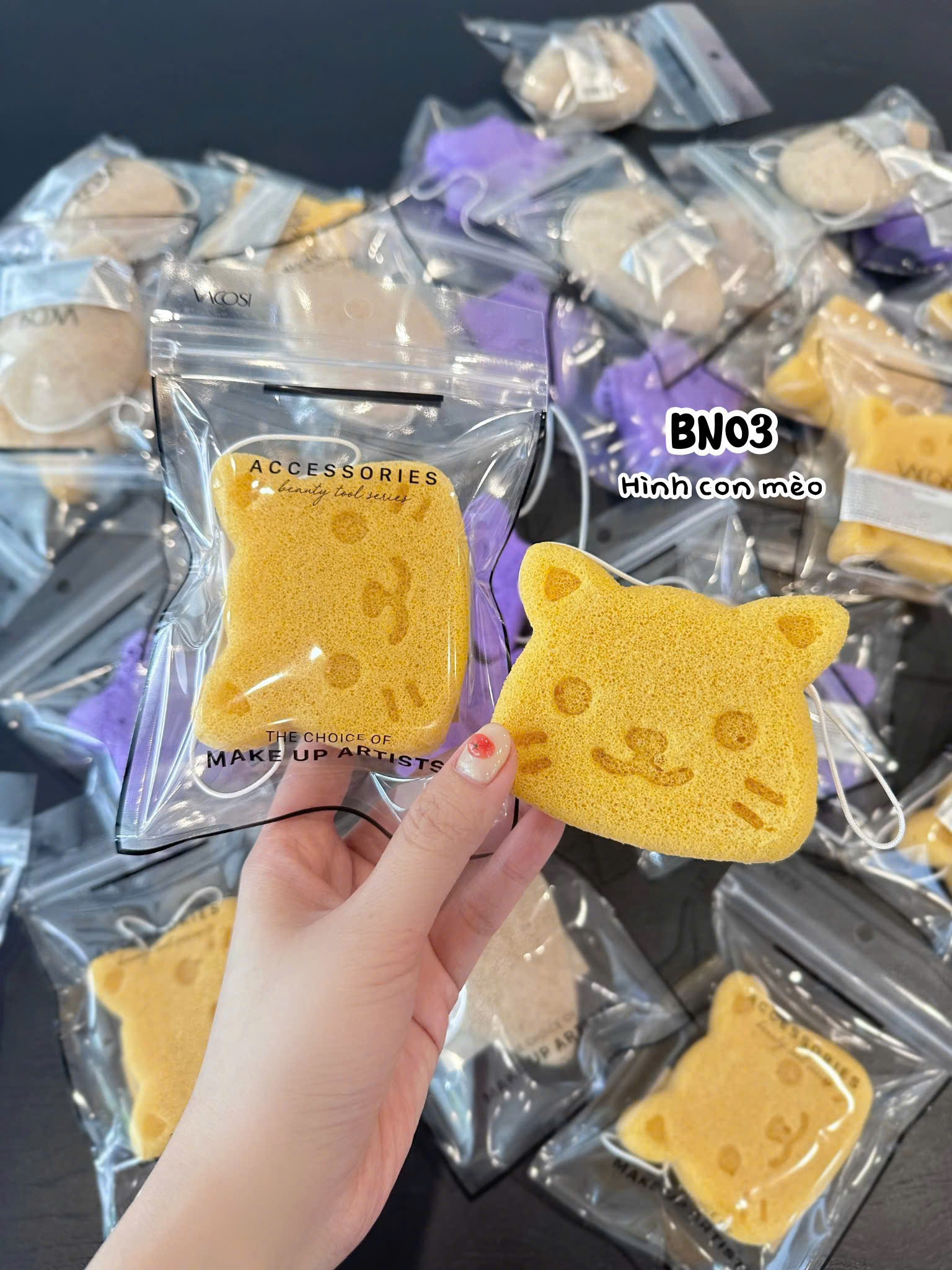 SET 3 BÔNG MÚT MINI XỎ NGÓN: HỒNG - KEM - TÍM - BP54-02 Bông mút mini xỏ ngón VACOSI có kích thước nhỏ gọn, nhiều hình dáng dễ thương với chất liệu mới HYDROPHILIC
