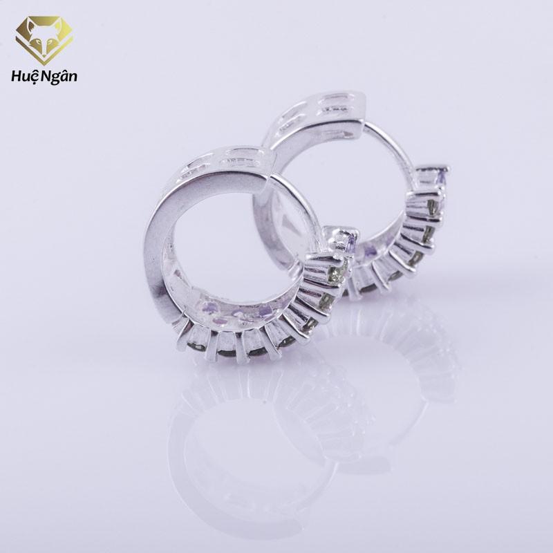 ✨Bông tai bạc Ý 925 Huệ Ngân - Bông vòng đính đá màu SE136