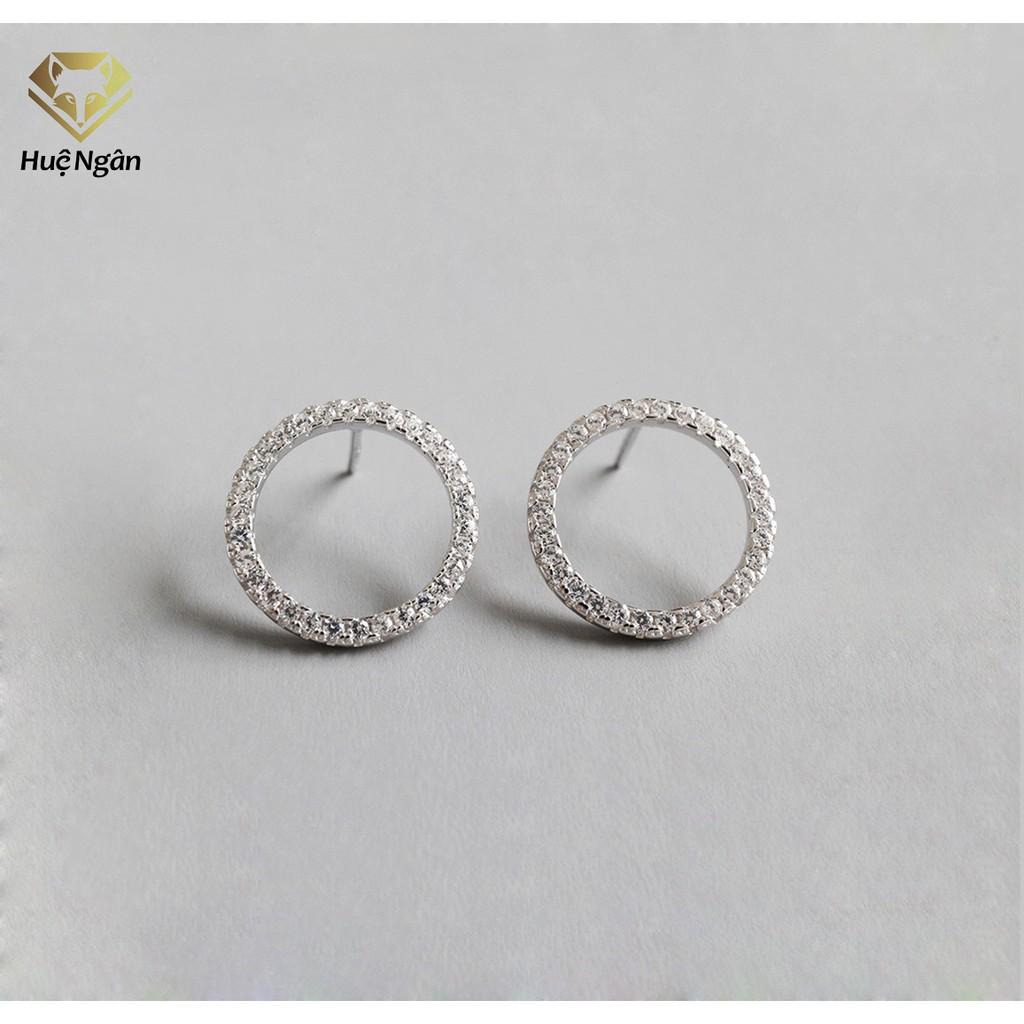 Bông tai bạc nguyên chất 925 mặt tròn lấp lánh cực sang trọng dành cho nữ