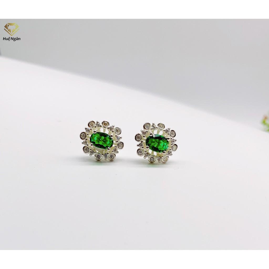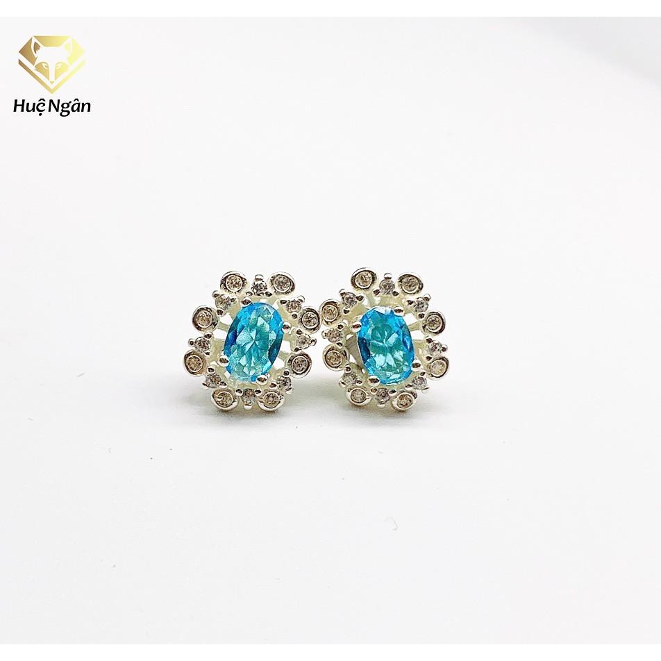 Bông tai bạc 925 xi kim- đá chủ thiên nhiên
