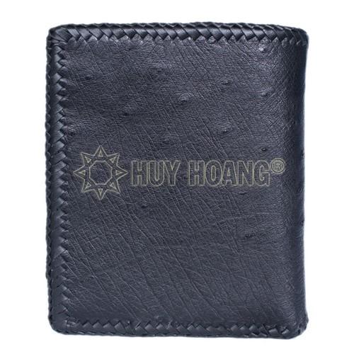 • Tên sản phẩm: Bóp nam Huy Hoàng da đà điểu da bụng kiểu đứng đan viền màu đen