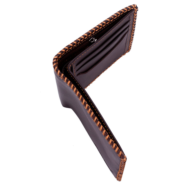 Ví/Bóp nam Huy Hoàng da bò đan viền màu nâu 2136