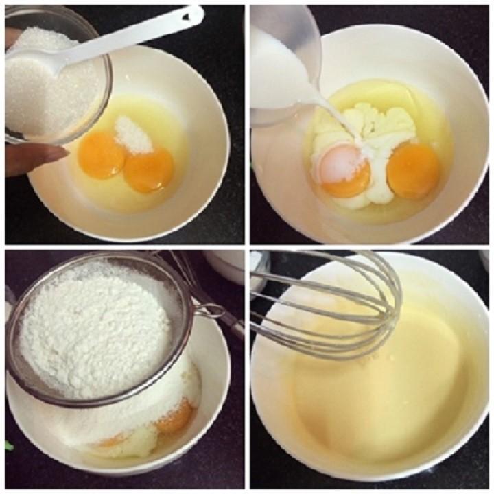 Hướng dẫn sử dụng: Bước 1 : Cho khoảng 900gr nước (hay nước cốt dừa) vào bột bánh xèo khuấy cho đều, có thể nêm gia vị theo sở thích. Bước 2 : Đun nóng chảo, cho