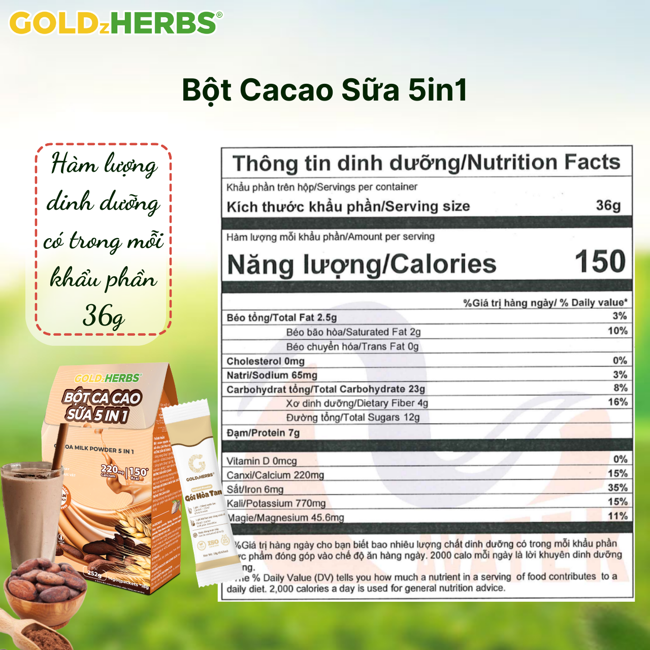 ✨Bột cacao sữa 5in1 GoldzHerbs – 14 gói/ 500g