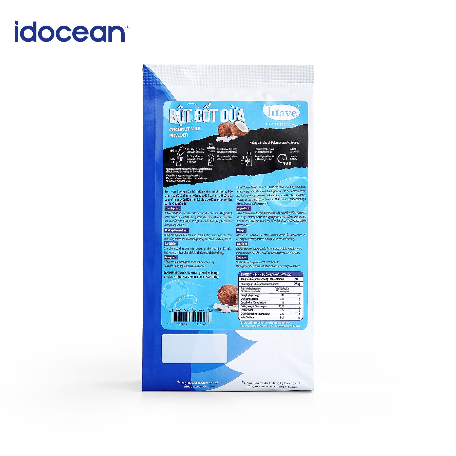 Thành phần: Bột cốt dừa, bột kem béo thực vật,…