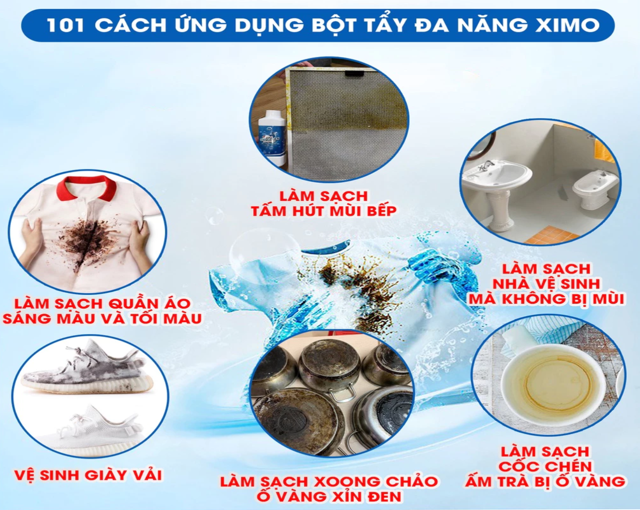- Có quá nhiều vết bẩn khác nhau trong sinh hoạt hàng ngày đặc biệt quần áo và đồ dùng của bạn, sẽ rất tốn rất nhiều chi phí để xử lý cho từng loại vết bẩn nhưng không hiệu quả và gây mùi không tốt cho sức khỏe, nắm bắt được điều đó, Ximo Home ra mắt bột tẩy vết bẩn đa năng Oxi Clean đánh bay tất cả các loại vết bẩn cứng đầu