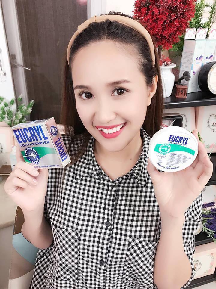 Bột trắng răng, Kem đánh răng trắng răng Eucryl Anh Giúp răng trắng sáng bền lâu, sạch bóng và thơm mát cả ngày         1.Giới thiệu bột trắng răng, kem đánh răng trắng răng Eucryl Anh        - Phân Loại: Bột trắng răng, Kem đánh răng trắng răng        - Thương hiệu: Eucryl        - Xuất xứ: Úc        - Đóng gói, có 6 phân loại dễ dàng chọn lựa:          + 1 Bột trắng răng 50g          + 1 Kem đánh trắng răng 62g          + 1 Bột + 1 Kem trắng răng (50g+62g)          + 2 Bột trắng răng 2x50g          + 2 Kem đánh trắng răng 2x62g          + 5 Kem đánh trắng răng 5x62g         2.Công dụng bột trắng răng, kem đánh răng trắng răng Eucryl Anh       - Làm sạch được các mảng bám, vết ố vàng trên răng do coffee, th.uốc lá, đồ uống có c.ồn một cách nhanh chóng.       - Làm răng trắng tự nhiên và đều màu.       - Với thành phần chứa thành phần tự nhiên như bạc hà và trà xanh mang lại hơi thở thơm mát, làm sạch các loại mùi khó chịu       - Tái tạo men răng, làm cho răng chắc khỏe hơn.       - Chống hình thành vôi răng.       - Ngoài ra bột trắng răng Eucryl có hiệu quả nhanh chóng chỉ sau 3 – 4 tuần sử dụng sản phẩm. Lúc đó bạn sẽ thấy tông răng của mình được cải thiện một cách rõ rệt nhất. Kem đánh trắng răng Eucryl Bao bì mẫu mã thay đổi theo từng đợt nhập hàng Bột trắng răng Eucryl Bao bì mẫu mã thay đổi theo từng đợt nhập hàng Bột trắng răng Eucryl Bao bì mẫu mã thay đổi theo từng đợt nhập hàng Bao bì mẫu mã thay đổi theo từng đợt nhập hàng Bao bì mẫu mã thay đổi theo từng đợt nhập hàng         3.Thành phần bột trắng răng, kem đánh răng trắng răng Eucryl Anh       Kem đánh răng trắng răng Eucryl Tooth Paste       - Thành phần bạc hà, trà xanh có tác dụng d.iệt khuẩn và giúp hơi thở thơm hơn       - Các thành phần khác có tác dụng làm trắng răng và bảo vệ răng như Calcium carbonate, flavour, Aluminum hydroxide…       - Ngoài ra còn các thành phần giúp ổn định thể chất của kem       Bột trắng răng Eucryl Tooth Powder       - Bột trắng răng Eucryl là một hỗn hợp bao gồm các thành phần từ thiên nhiên như bạc hà, trà xanh, vitamin D.       - Bột trắng răng Eucryl có tính axit nhẹ, các thành phần trong Eucryl sẽ giúp loại bỏ tốt những vết ố vàng có trên răng         4.Đối tượng bột trắng răng, kem đánh răng trắng răng Eucryl Anh       - Từ 12 tuổi trở lên có nhu cầu về 1 bộ răng trắng xinh       - Tránh sử dụng với răng đang gặp vấn đề nha khoa (đau răng, sâu răng…)         5.Cách sử dụng bột trắng răng, kem đánh răng trắng răng Eucryl Anh       Cách dùng kem đánh răng trắng răng Eucryl Anh       - Bước 1: Súc miệng qua bằng nước và làm ướt bàn chải       - Bước 2: Lấy ra một lượng kem vừa đủ lên mặt bàn chải đánh răng.       - Bước 3: Tiến hành đánh răng như cách thức thông thường.       - Bước 4: Súc miệng bằng nước sạch để làm sạch bước cuối cùng       - Liều dùng:       + Tuần thứ 1 dùng hàng ngày vào buổi tối trước khi đi ngủ       - Từ tuần thứ 2 bạn dùng 2 – 3 lần trong 1 tuần buổi tối trước khi ngủ       Cách dùng bột trắng răng và kem đánh răng trắng răng Eucryl Anh       - Bột tẩy trắng răng được sử dụng cùng với kem đánh răng. Cùng xem hướng dẫn sử dụng bột trắng răng Eucryl như sau:       + Bước 1: Lấy một chút nước làm ướt bàn chải đánh răng.       + Bước 2: Bạn lấy một lượng vừa đủ bột vào bàn chải đánh răng hoặc lấy một lượng bột đổ ra tay chà vào phần răng bị ố vàng.       + Bước 3: Đánh răng bình thường như sử dụng với kem đánh răng hàng ngày.       - Liều dùng:       + Sử dụng từ 3 đến 4 lần trên ngày đối với trường hợp răng bị ố vàng, xỉn màu lâu năm.       + Sử dụng từ 2 đến 3 lần trên ngày đối với trường hợp răng bị ố vàng, xỉn màu ở mức độ nhẹ.       - Lưu ý: Trong quá trình tẩy trắng răng bằng bột và kem đánh răng Eucyl hay bất kỳ sản phẩm nào khác thì các bạn cần phải chú ý 1 số vấn đề sau:       + Không sử dụng hoặc hạn chế tối đa trà, café, th.uốc lá, cocacola, r.ượu vang, nếu có sử dụng hãy sử dụng bằng ống hút.       + Hãy sử dụng sản phẩm Eucryl theo đúng hướng dẫn sử dụng để đạt hiệu quả cao hơn.       + Không lạm dụng vì nó có thể xảy ra tác dụng ngược.       + Cần sử dụng 1 liệu trình liên tục với mức độ vừa phải với hàm răng, tránh ngắt quãng khiến hiệu quả tẩy trắng răng bị giảm.         6.Cách bảo quản bột trắng răng, kem đánh răng trắng răng Eucryl Anh        - Bảo quản nhiệt độ phòng dưới 30 độ C, nơi khôn ráo, tránh ánh nắng trực tiếp, tránh va đập mạnh.        - Tránh xa tầm tay trẻ em        - Hạn dùng: 12 tháng sau khi mở nắp.         7.Một số câu hỏi thường gặp bột tr