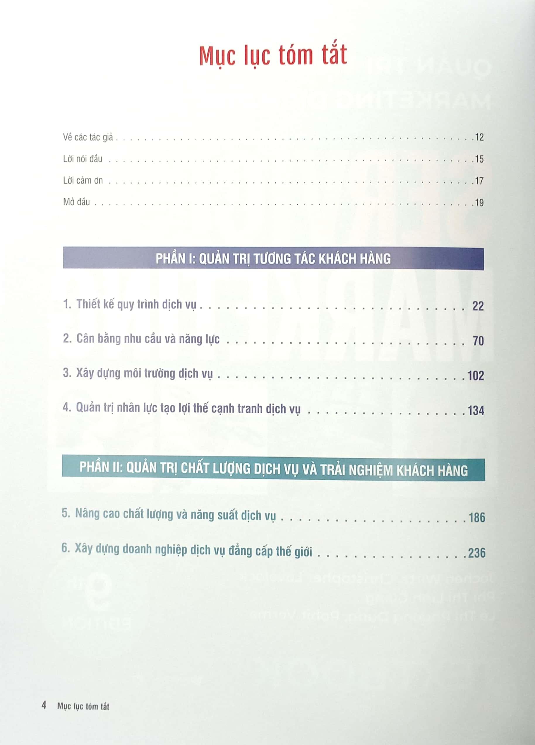 Trong bối cảnh đó, các tác giả đã làm việc cùng nhau để phát triển bộ hai cuốn sách về quản trị marketing dịch vụ dành cho những nhà quản lý, nhân viên marketing, sinh viên muốn tìm hiểu và phát triển kiến thức chuyên sâu trong lĩnh vực này tại Việt Nam.