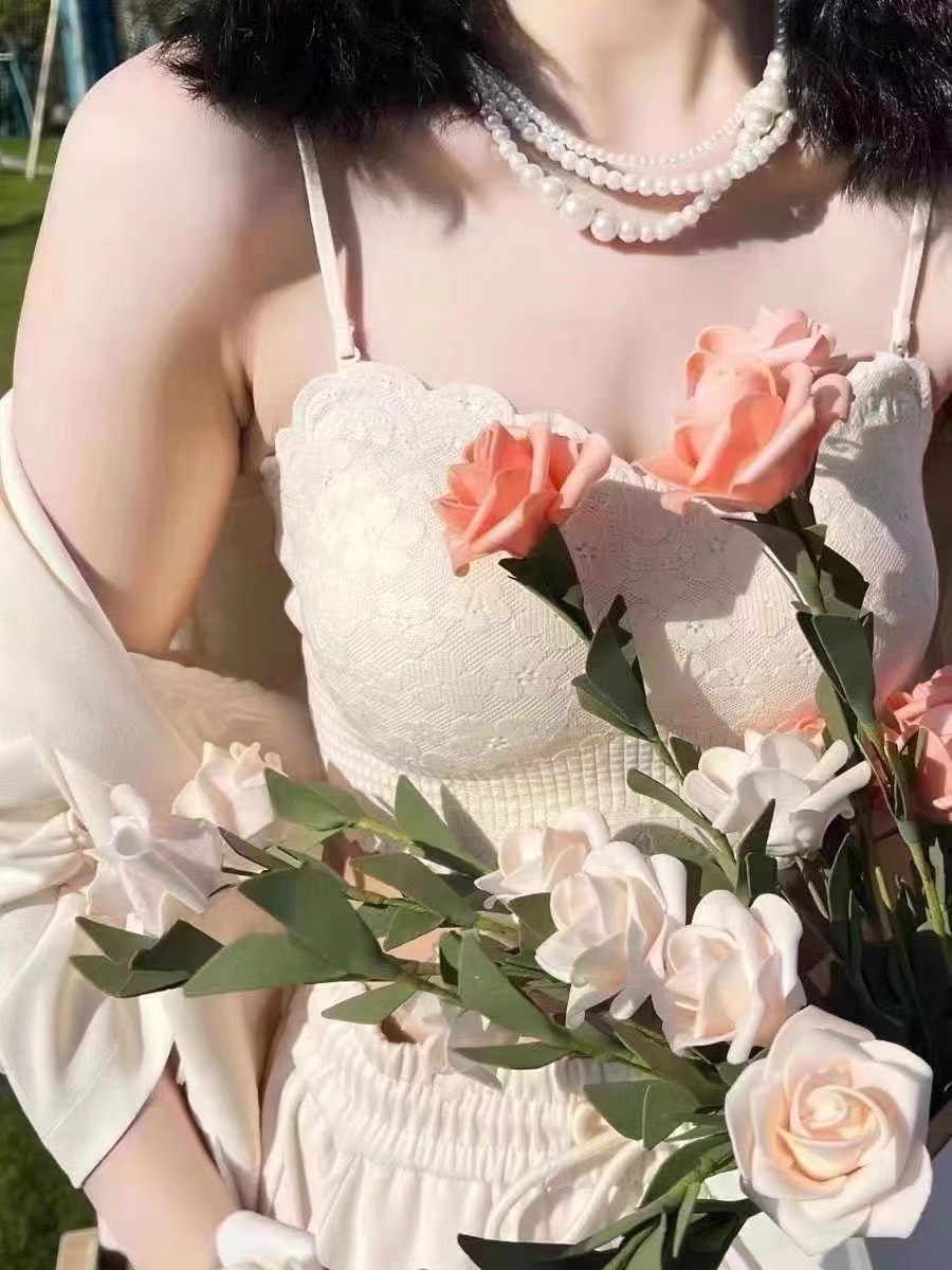 Áo bra 2 dây ren hoa hồng co giãn croptop roses