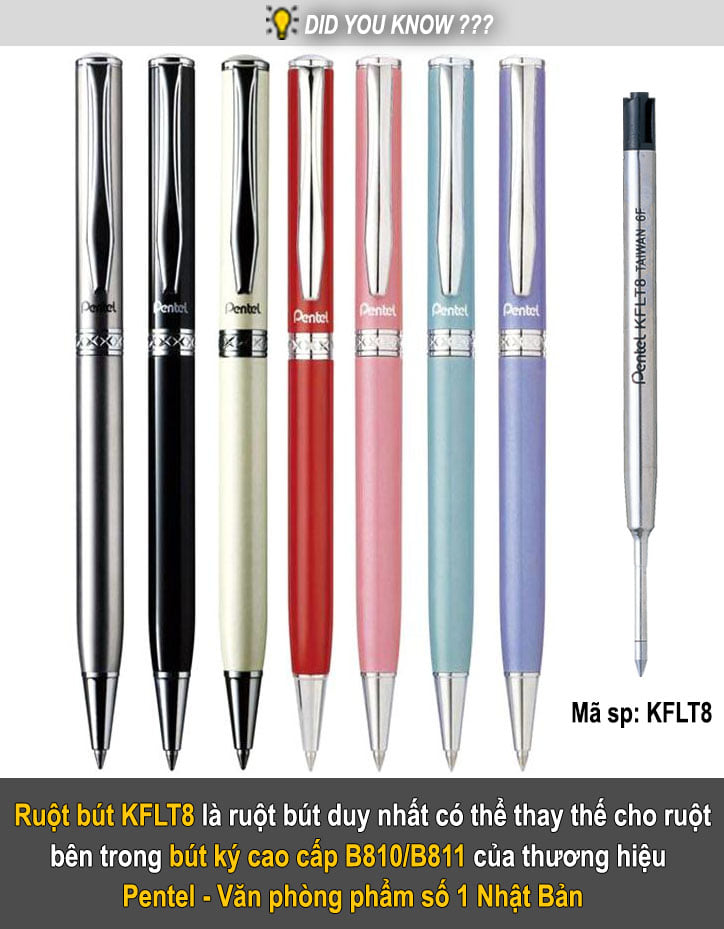 Pentel VietNam - Văn phòng phẩm số 1 Nhật Bản Thông tin sản phẩm Bút Ký Cao Cấp Pentel B811 Ngòi 0.8mm Mực Xanh| Thiết Kế Nắp Vặn Thanh Lịch | Nhiều Màu Vỏ |