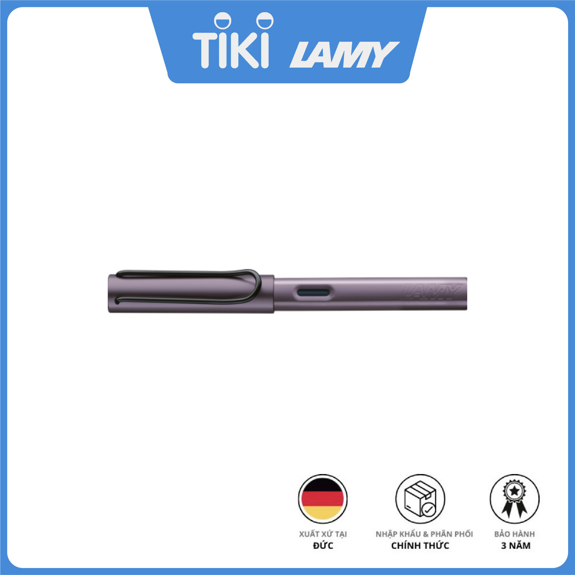 Bút Máy LAMY Al-star Màu 0D3-Lilac Bút máy LAMY Al-star là dòng bút máy thời trang với thiết kế đơn giản thanh lịch. Bút hoàn thiện trong một bộ vỏ nhôm màu với nhiều màu thời trang phù hợp với cá tính và phong cách riêng của bạn. Đặc biệt bút có ngòi thép cứng cáp bền bỉ, có thể thay đổi dễ dàng theo những nhu cầu sử dụng khác nhau. The light aluminum experience. Những người sử dụng LAMY AL-star đánh giá cao sự nhẹ nhàng đặc biệt của chất liệu mạnh mẽ nhưng bền bỉ của nó. Tay cầm trong suốt của bút giúp người dùng thấy được rõ ràng về hoạt động bên trong của bộ nạp mực. LAMY AL-star là sự kết hợp của các vật liệu tạo nên sự mạnh mẽ và sang trọng, loạt sản phẩm này mang đến nhiều bất ngờ với các phiên bản đặc biệt mang màu sắc hiện đại, hướng đến phong cách sống - truyền cảm hứng cho các nhà văn thể hiện cá tính đương đại của mình. Thiết kế bút giúp bạn có thể viết trong thời gian dài mà không bị mỏi. Vỏ bút cứng cáp được làm từ nhôm màu thời trang chất lượng cao với nhiều màu sắc cá tính để bạn chọn lựa và nắp được trang bị kẹp kim loại có tác động lò xo tự động được mạ crom. Đặc tính sản phẩm - Thương hiệu : LAMY - Xuất Xứ : Đức - Dòng sản phẩm : LAMY Al-star - Loại Bút : Bút máy - Kích Thước : 139 x 13 x 13 mm - Màu Sắc : Lilac - Chất liệu thân : Nhôm - Trọng lượng : 22g - Bảo hành : 3 năm - Loại bảo hành : Thẻ bảo hành và hóa đơn sản phẩm - Số lượng chi tiết trong bộ sản phẩm: 1 - Sản phẩm bao gồm: 1 bút máy Lamy Al-star và Hộp Bút Phụ kiện hoàn hảo kết hợp cùng sản phẩm: - Ống mực LAMY T10 -