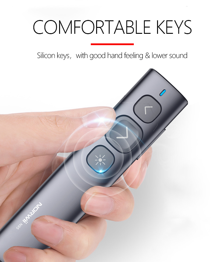 Bút trình chiếu cho màn hình LED Norwii N96S với Laser màu xanh là lựa chọn hoàn hảo cho các bài thuyết trình, giảng dạy và hội nghị, với thiết kế tinh tế và tính