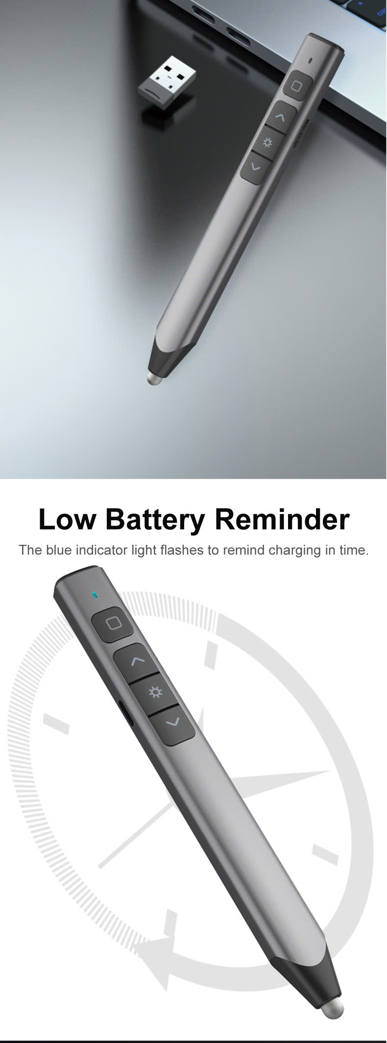 1. Tính năng: sử dụng trình chiếu, thuyết trình, word, PowerP 2. Led: màu đỏ 3. Sử dụng: Pin AAA 4. Khoảng cách chiếu Led: 100-200M 5. Khoảng cách điều khiển: sóng 2.4Ghz lên đến