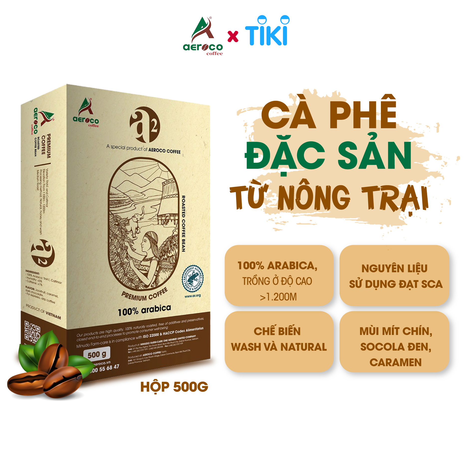 ✨Cà phê hạt rang AEROCO A2 pha phin và pha máy, hộp 500g, nguyên chất 100% rang mộc hậu vị ngọt thơm quyến rũ