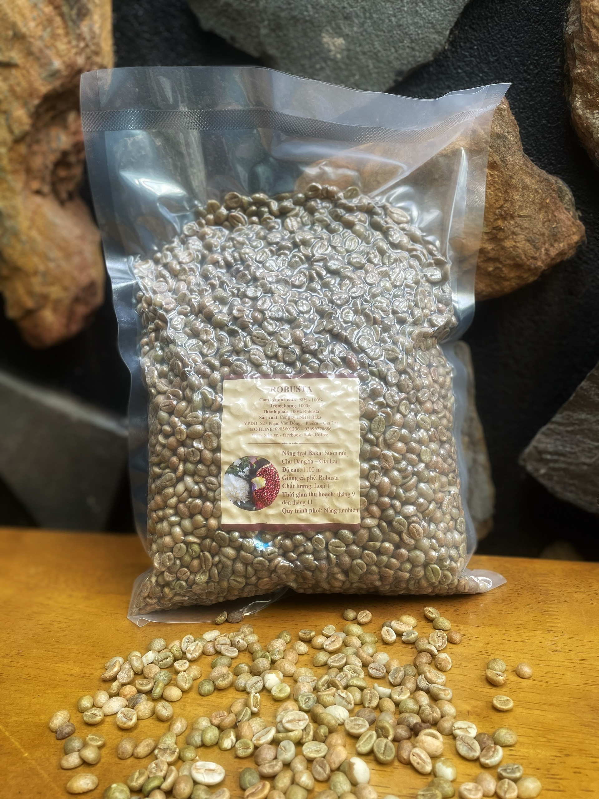 1. THÔNG TIN SẢN PHẨM: Tên Sản Phẩm: Cà Phê Nhân Xanh ROBUSTA. Thành Phần: 100% Hạt cà phê Robusta nhân xanh. Trọng Lượng: 1kg Xuất xứ: Bảo Lộc - Lâm Đồng - Việt Nam.