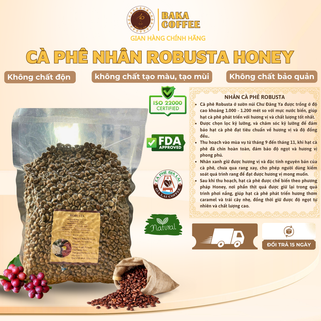 - Không chất tạo màu, mùi hóa chất. Hạn sử dụng: 12 tháng kể từ ngày sản xuất (xem trên bao bì) Thương hiệu: Cà Phê Baka