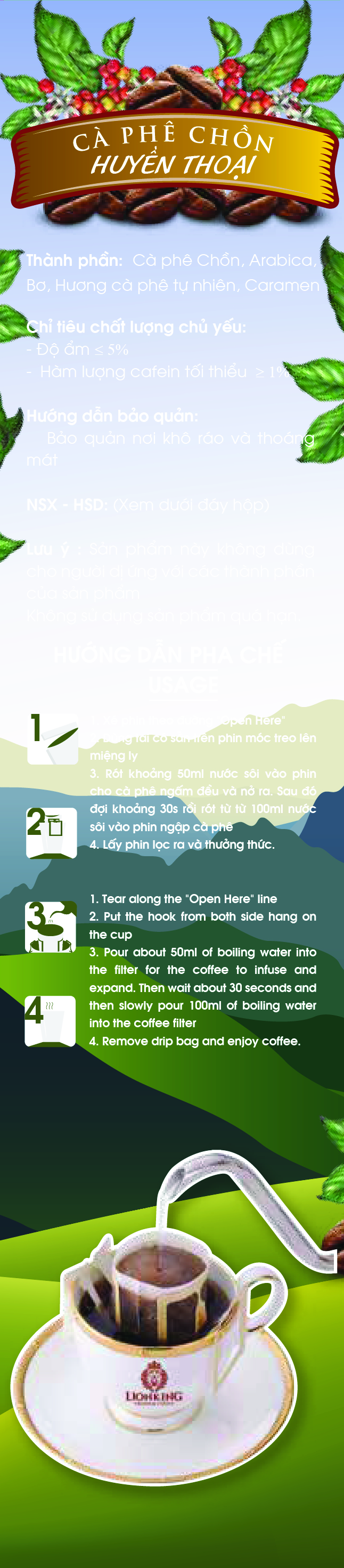 Cafe Phin Giấy LionKing Chồn Huyền Thoại là dòng sản phẩm kết hợp giữa truyền thống hiện đại đưa đến tiện ích cho người sử dụng. Sử dụng 100% cà phê nguyên chất, cà phê phin giấy tiện dụng trong cuộc sống bận rộn đồng thời vẫn giữ hương vị đậm đà rất tự nhiên của cà phê Việt.