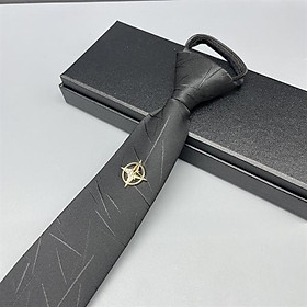 Cà vạt nam thắt sẵn 6cm màu đen hoạ tiết gắn tag cài thời trang 2024
