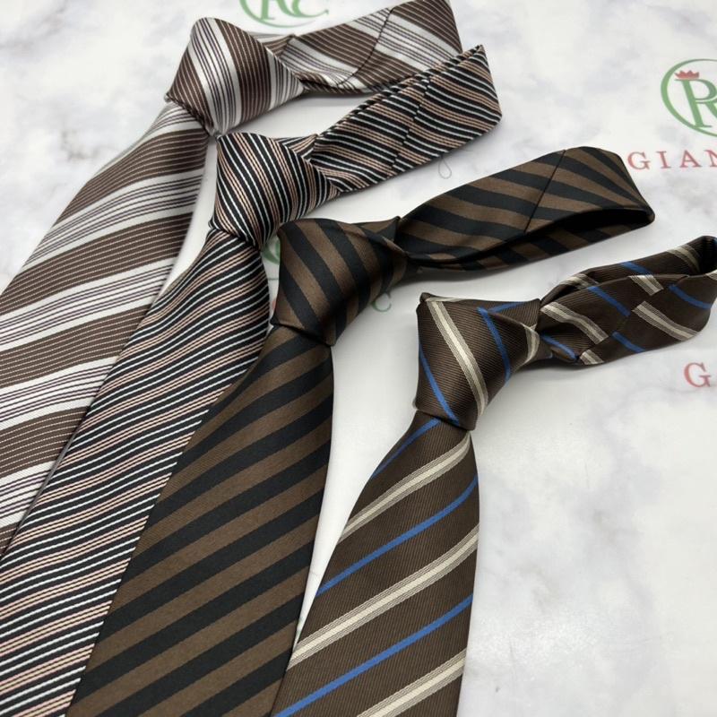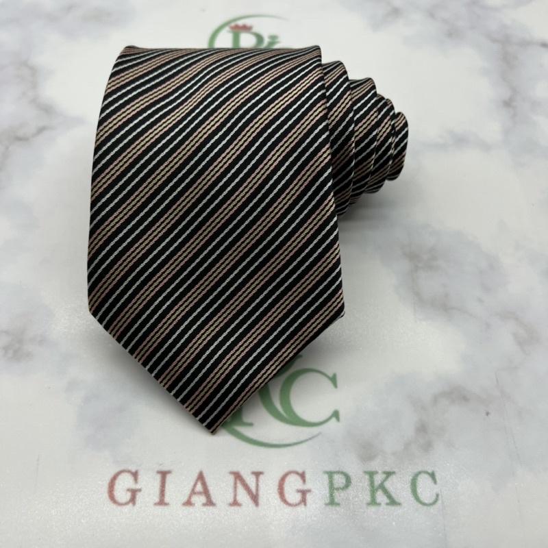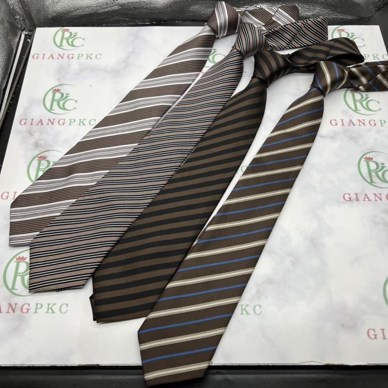 Cà vạt nam trung tuổi bản 8cm tự thắt nâu kẻ lịch lãm Giangpkc chất liệu sp : dệt kim 3 lớp dầy kích cỡ 145 cm x8cm dùng cho người trung tuổi công dụng