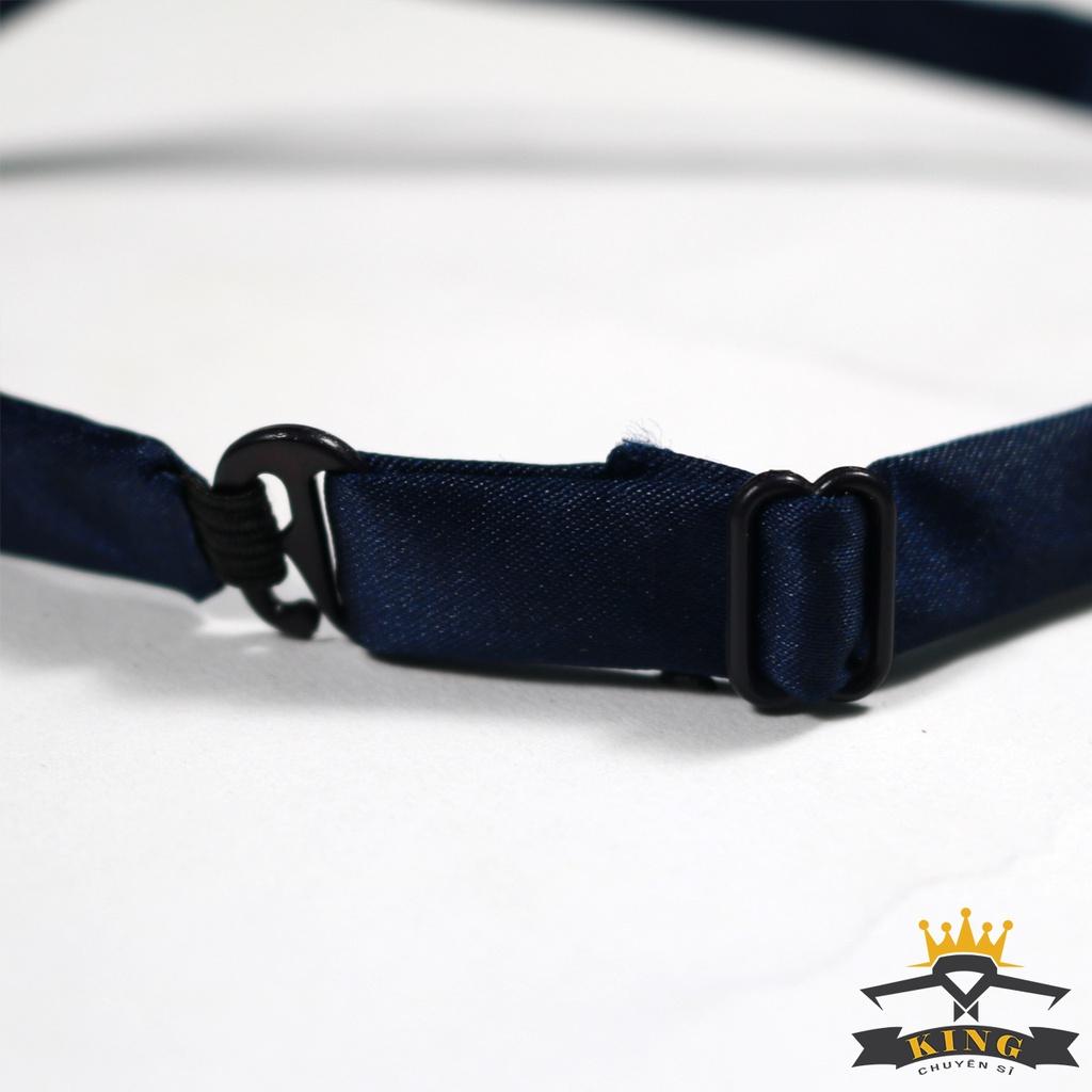 - Thông tin sản phẩm Chất liệu gồm 1. Vải Phi Bóng 2. Miếng lót bên trong là vải không dệt, from cứng 3. Dây đeo có móc cài nhựa Kích thước nơ đeo cổ