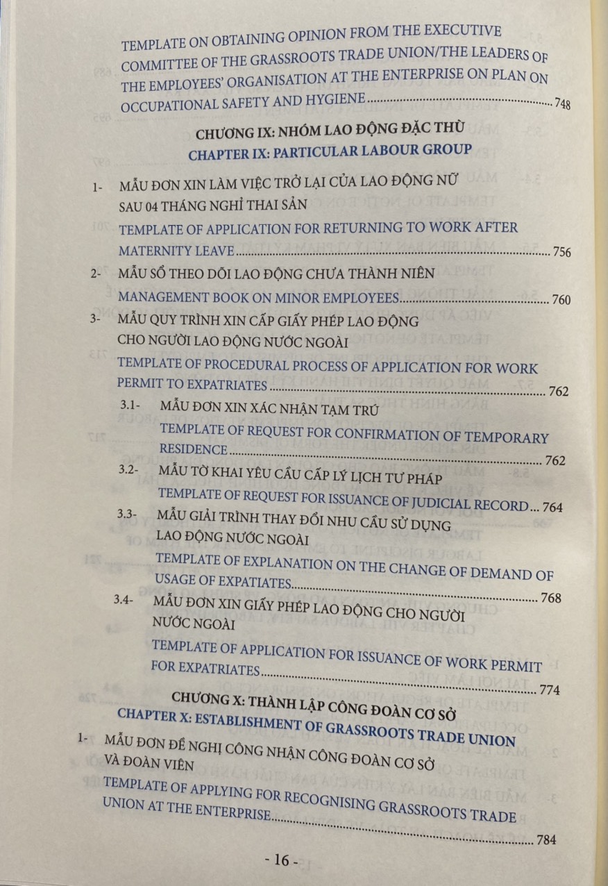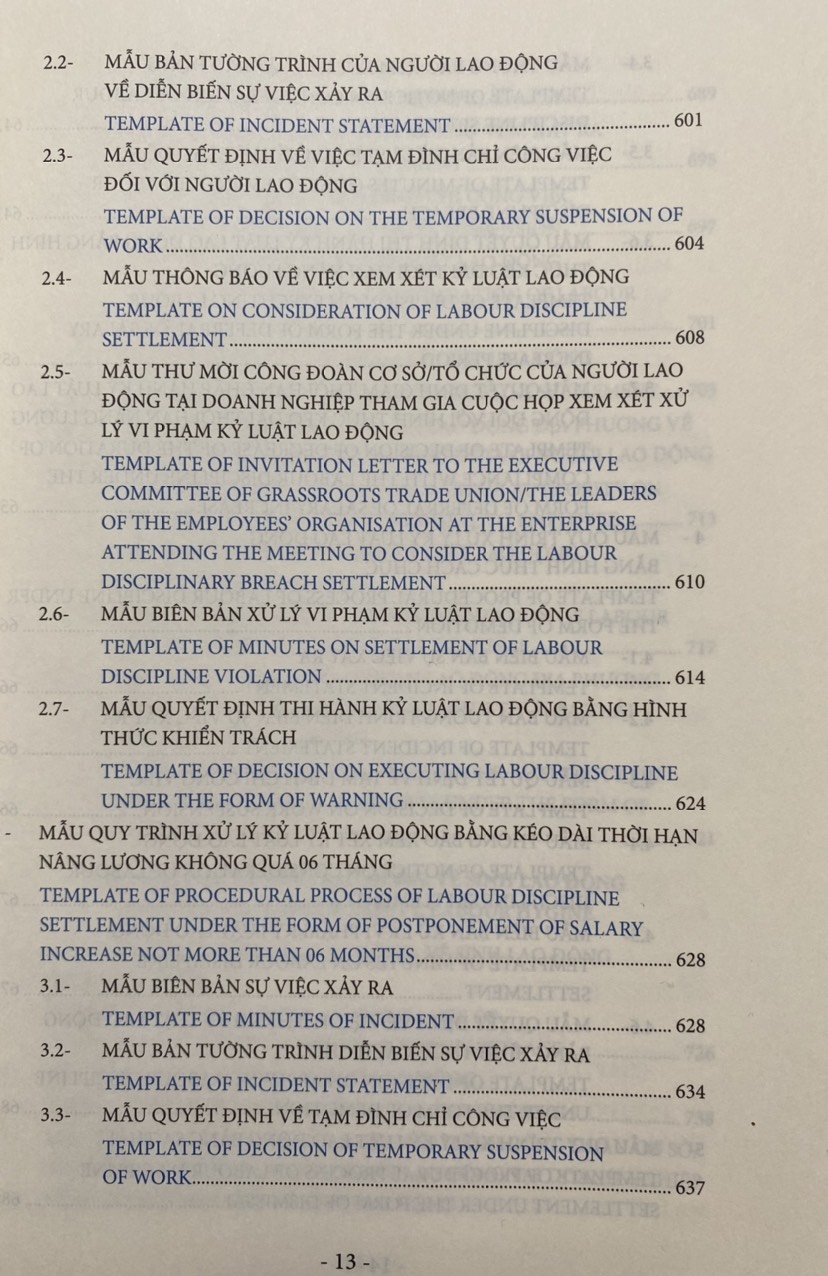 Các biểu mẫu nhân sự về pháp luật lao động được trình bày dưới dạng song ngữ Việt Anh giúp độc giả thuận tiện tham chiếu và áp dụng phù hợp.