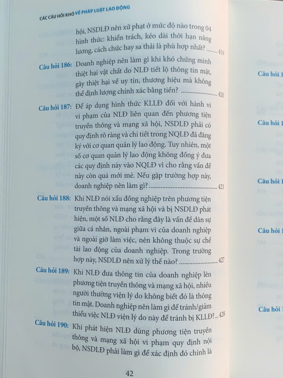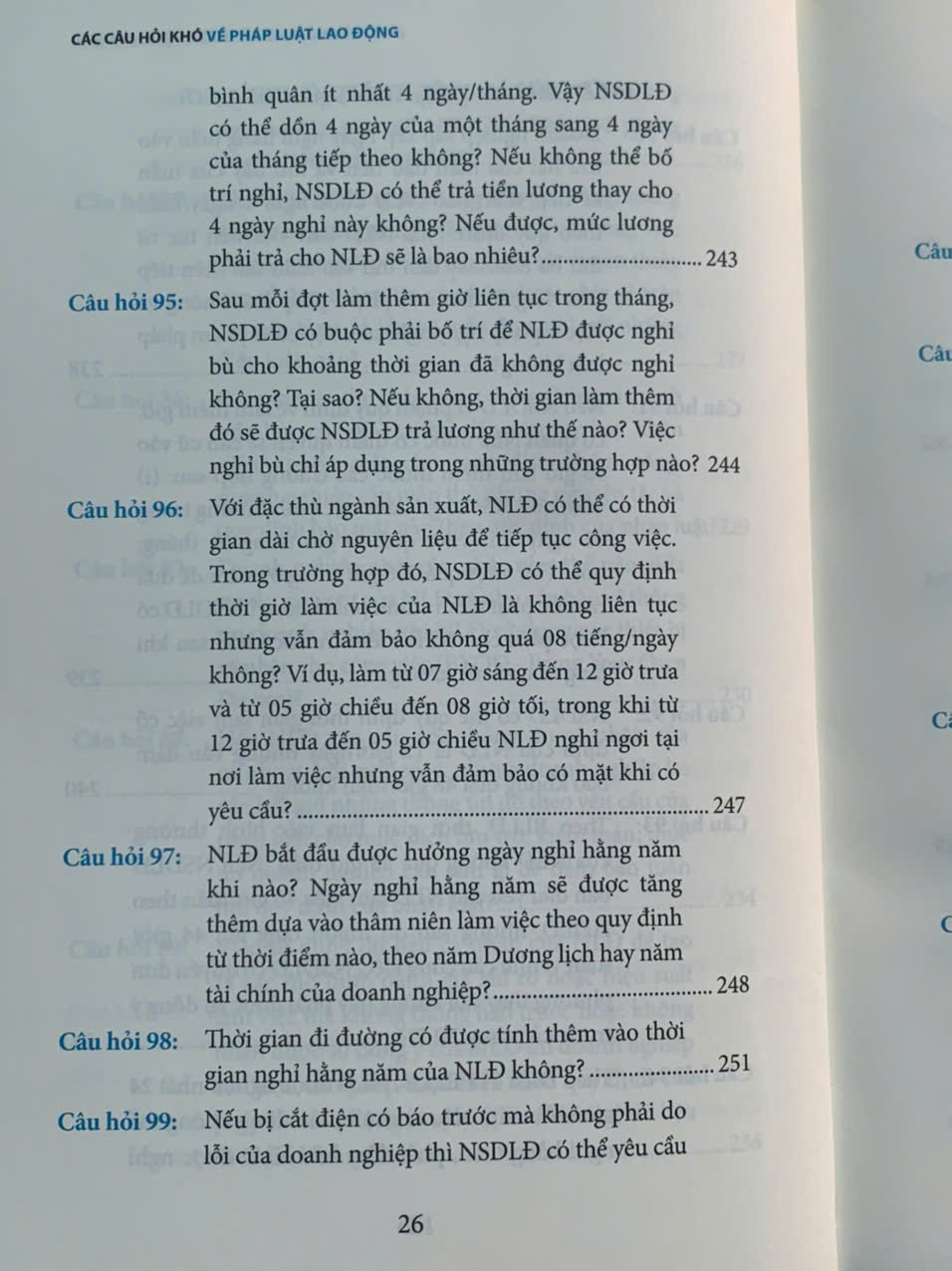 Trong lần xuất bản này, tác giả đã dành nhiều tâm huyết để xây dựng và hoàn thiện nội dung, nhằm mang đến cho độc giả những kiến thức chuyên sâu và mới nhất về lĩnh vực pháp luật lao động. Nội dung cuốn sách không chỉ dựa trên những quy định pháp luật mới nhất từ các cơ quan Nhà nước mà còn được xây dựng dựa trên những câu hỏi thực tiễn, khó khăn mà nhiều người gặp phải. Hy vọng rằng cuốn sách sẽ trở thành một công cụ hữu ích, giúp bạn đọc giải quyết những thắc mắc phức tạp và đạt được sự hiểu biết sâu rộng hơn về pháp luật lao động.