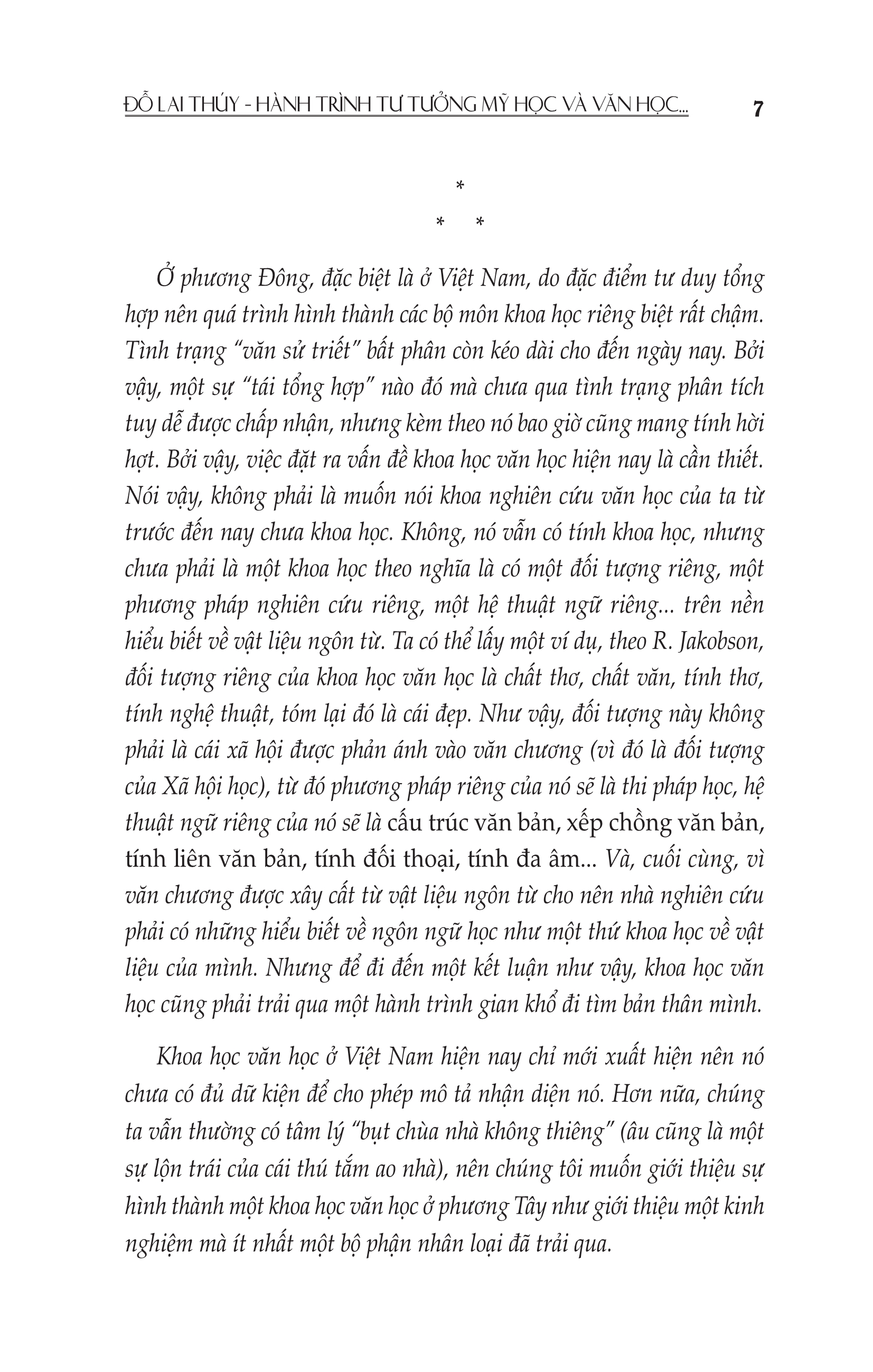 Xu thế văn hóa Việt Nam thế kỷ XX (và, có lẽ, cả thế kỷ XXI nữa) là hiện đại hóa để hòa nhịp cùng thế giới. Bởi vậy, việc giới thiệu những thành tựu khoa học của nước ngoài là điều vô cùng cần thiết. Nhưng do đặc điểm của Việt Nam là một nước sẽ công nghiệp hóa, hiện đại hóa trong một thế giới đã chuyển sang hậu công nghiệp, nên bản lĩnh lựa chọn là tối quan trọng: làm sao vừa đảm bảo được những yếu tố công nghiệp (tính tuần tự) vừa tiếp thu được những yếu tố hậu công nghiệp (tính nhảy vọt) để rút ngắn thời gian, vừa không giam chân trong trì trệ, vừa không nôn nóng duy ý chí. Nếu xem xét một mặt cắt đồng đại của phê bình văn học hiện nay, người ta thấy nó hội đủ các yếu tố nông nghiệp, công nghiệp, hậu công nghiệ Từ những suy tư học thuật nghiêm túc, cập nhật và cập thế giới đến thói đôi co cãi nhau vặt, đủ cả. Bởi vậy, để khỏi làm rối bạn đọc, trước khi và cùng với việc giới thiệu những thành tựu của khoa học về văn chương của nước ngoài hiện nay, chúng tôi muốn giới thiệu quá trình hình thành của nó, lịch sử của nó, như một thứ kinh nghiệm, một vật-cho-ta.