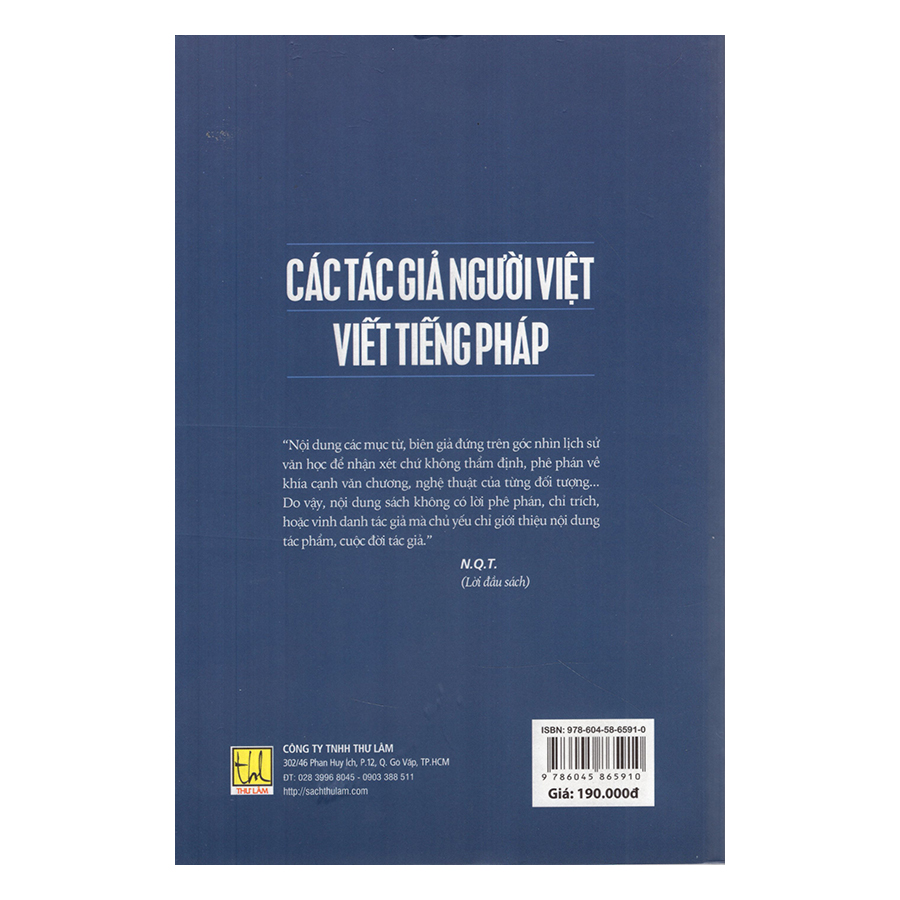 Các Tác Giả Người Việt Viết Tiếng Pháp là cuốn sách giới thiệu các nhà văn, học giả Việt Nam nghiên cứu, sáng tác các đề tài về Việt Nam học trong thế kỉ XX.Trong chiều hướng và chừng mực đó, tác giả giới thiệu, nhận định về các sáng tác phẩm cũng như cuộc đời các tác giả người Việt sử dụng tiếng Pháp để giới thiệu văn minh sử Việt Nam, giúp cộng đồng sử dụng tiếng Pháp hiểu văn hoá, văn minh Việt Nam một cách đứng đắn.