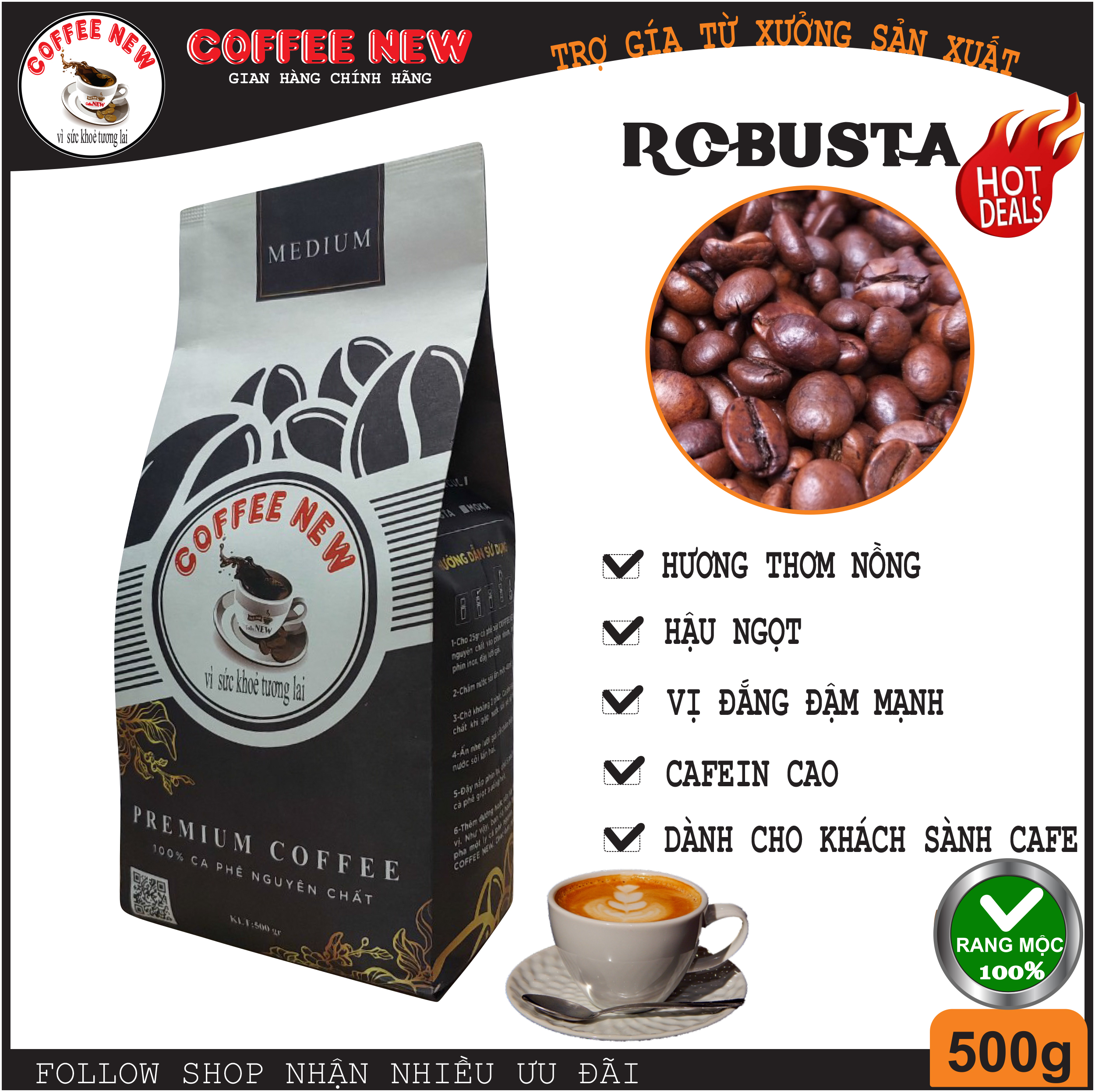 Cà phê nguyên chất ROBUSTA- Sản phẩm được sản xuất và phân phối bởi công ty TNHH XNK Coffee New