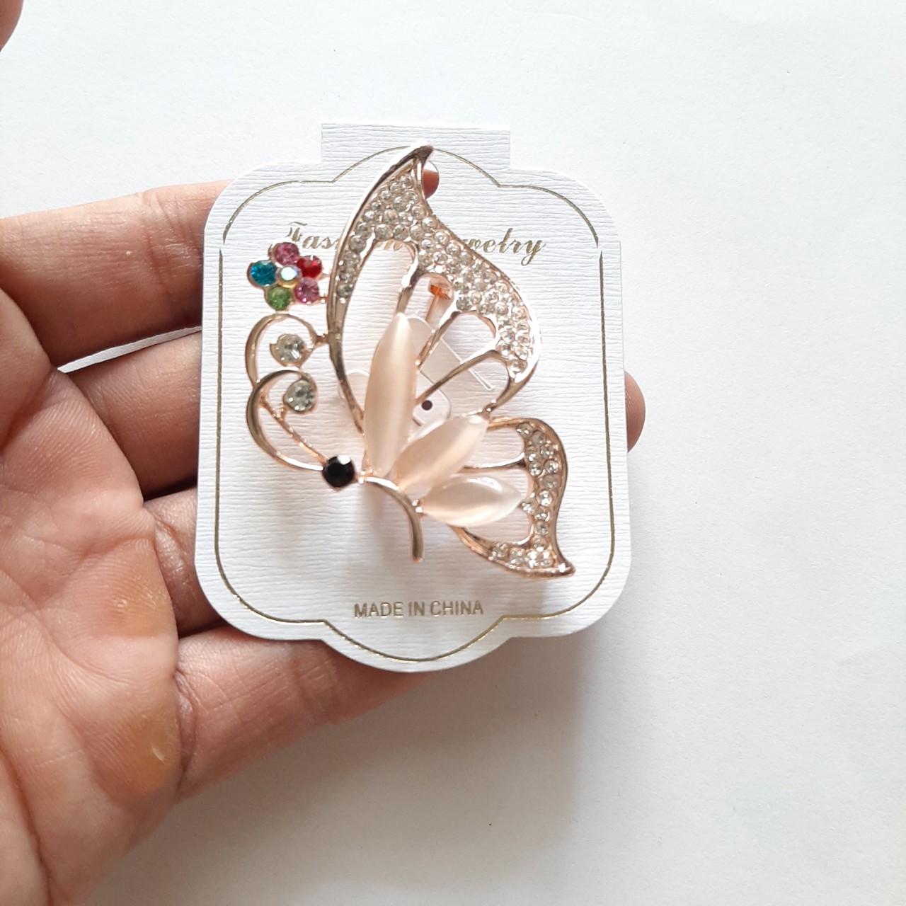 Trâm Cài Áo Nữ Quà Tặng Bươm Bướm Đính Đá Trắng Trang Nhã Sang Trọng (Kèm Hộp Quà Tặng)