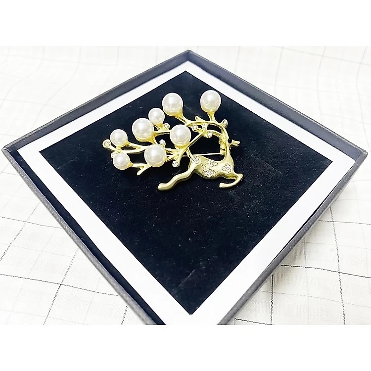 Trâm Cài Áo Nữ Quà Tặng Hươu Vàng Đính Đá Ngọc Trai Trang Nhã Sang Trọng (Kèm Hộp) Kích thước: 5x4cm Chất liệu: hợp kim không gây dị ứng, an toàn cho làn da của