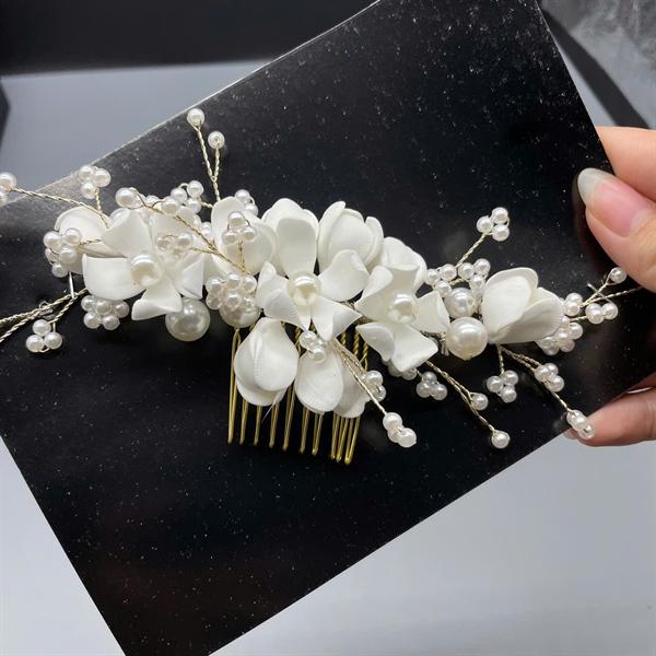 ✨Cài tóc cô dâu hoa đất sét trắng có sẵn xược cài mã 004 - 18cm