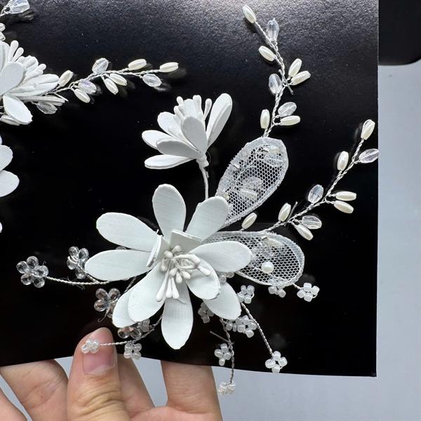 ✨Cài tóc cô dâu hoa xốp trắng kết hạt cườm mẫu mới t12/2024