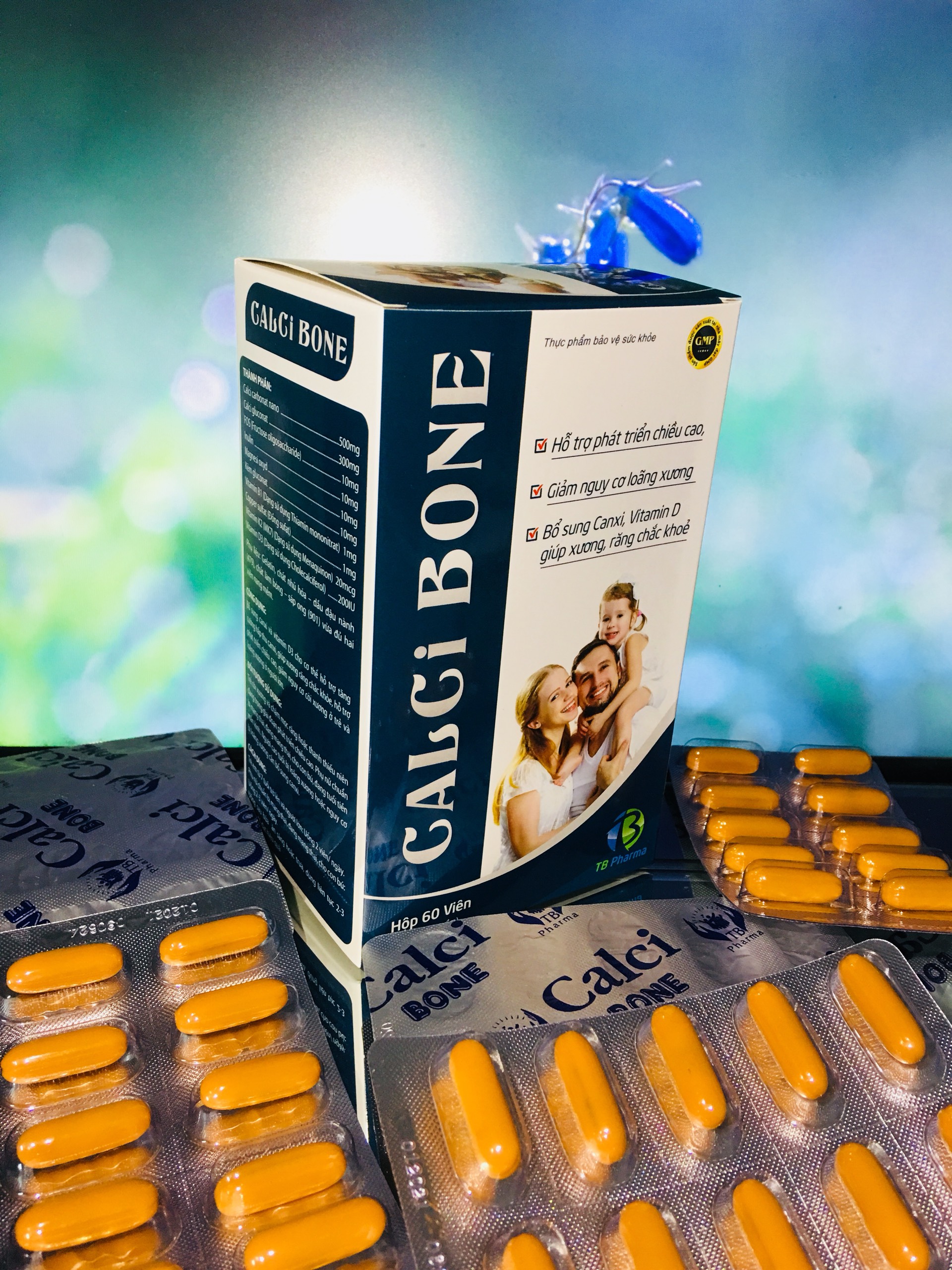 Mua tại TiktokCALCI BONE - Tăng chiều cao cho Tuổi Dậy Thì, hỗ trợ tăng cường hấp thu canxi cho bà Bầu, Người Cao Tuổi - Giúp xương và răng chắc khỏe Thành Phần : Calci carbonat nano………………………………....500mg Calci gluconat…………………………….……… 300mg FOS (Fructose oligosaccharide)…………. ………....10mg Inulin………………………………………………....10mg Magnesi oxyd……………………………..……… 10mg Kẽm gluconat………………………………………....10mg Vitamin B1 (Dạng sử dụng Thiamin mononitrat)…….1mg Copper sulfat (Đồng sufat)…………………………....1mg Vitamin K2 (MK7) (Dạng sử dụng Menaquinon )..…..20mcg Vitamin D3 (Dạng sử dụng Cholecalciferol)…… ....200 IU Phụ liệu: Gelatin, chất nhũ hóa – dầu đậu nành (479), chất làm bóng – sáp ong (901) vừa đủ . Công dụng: Bổ sung canxi và vitamin D3 cho cơ thể hỗ trợ tăng cường hấp thu canxi, giúp xương răng chắc khỏe, hỗ trợ phát triển chiều cao, giảm nguy cơ còi xương ở trẻ và loãng xương ở người lớn. Đối tượng sử dụng: Trẻ còi xương và chậm mọc răng hoặc thanh thiếu niên đang trong giai đoạn phát triển chiều cao. Phụ nữ chuẩn bị mang thai, đang mang thai, cho con bú, đang tuổi tiền mãn kinh. Người cao tuổi bị loãng xương hoặc nguy cơ bị loãng xương cần bổ sung canxi. Cách dùng: Trẻ em từ 7 tuổi trở lên và người lớn: Uống 2 viên/ ngày. Phụ nữ chuẩn bị mang thai, đang mang thai, cho con bú: Uống 2-3 viên/ ngày. Uống sau bữa ăn sáng hoặc trưa, dùng liên tục 2-3 tháng để đạt hiệu quả Chú ý: Thực phẩm này không phải là thuốc, không có tác dụng thay thế thuốc chữa bệnh. Không sử dụng cho người mẫn cảm với bất kỳ thành phần nào của sản phẩm. Không sử dụng cho người sỏi thận, sỏi tiết niệu QUYỀN LỢI KHÁCH HÀNG Chính sách gửi lại trong vòng 03 ngày khi sản phẩm kém chất lượng, không giống hình, Sản phẩm chỉ được gửi lại khi còn nguyên tem mác. Khách hàng cũ: Liên tục được cập nhật những ưu đãi mới. Màu sắc & sản phẩm có thể khác với hình gốc 1 chút nhé khách iu do ánh sáng khi chụp.