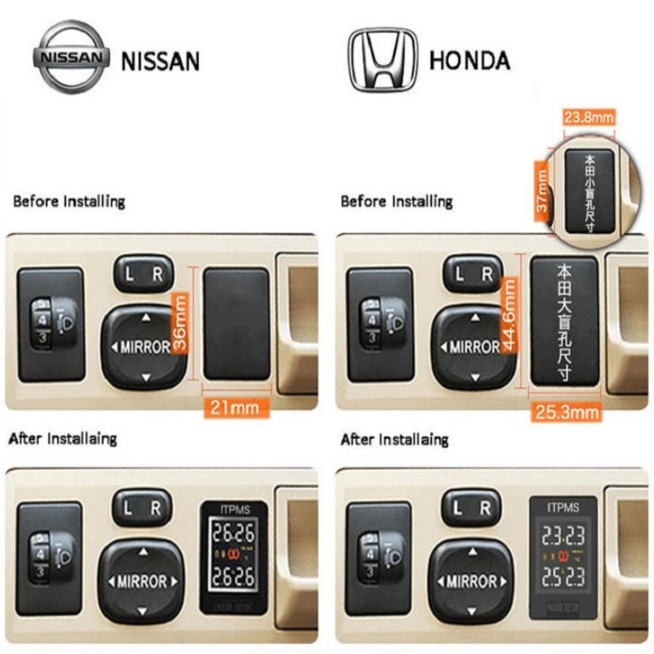 - Lưu ý: Trước khi đặt hàng, khách hàng nên đo kích thước lỗ đặt cảm biến áp suất lốp.