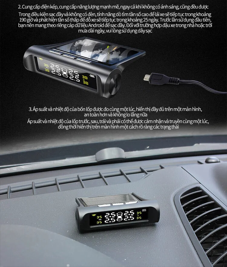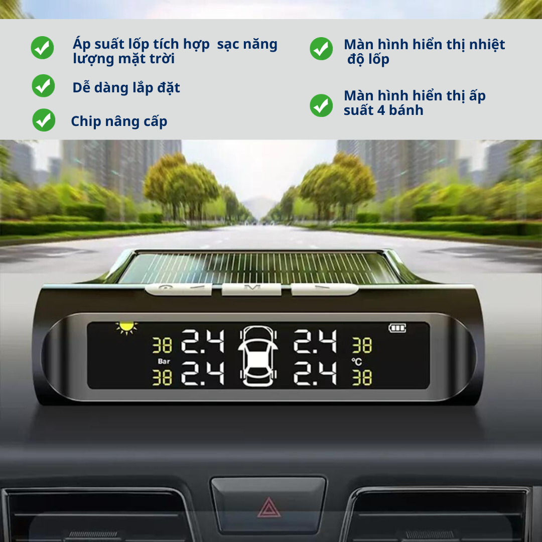 - Cảm Biến Áp Suất Lốp Ô Tô TPMS Phiên Bản QUỐC TẾ Màn Hình Màu dùng Năng Lượng Mặt Trời (Loại gắn ngoài van)