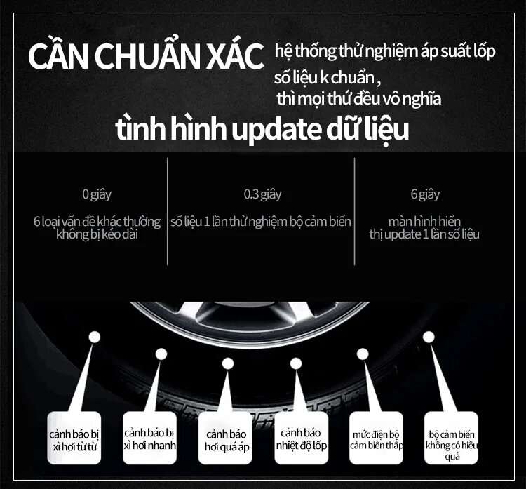 - Cảnh báo bằng âm thanh và cả hình ảnh khi áp suất lốp quá thấp hoặc nhiệt độ lốp quá cao.