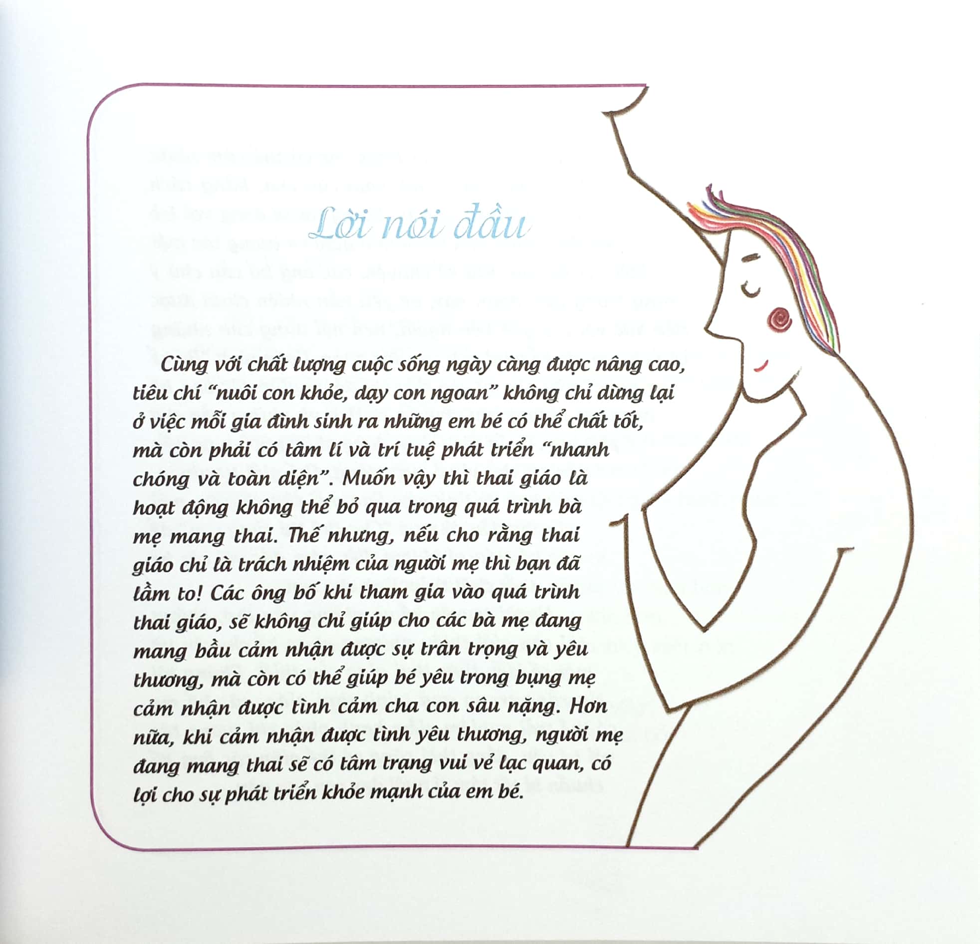 Cuốn sách này tuyển chọn những câu chuyện thai giáo thú vị để giúp các bố mẹ gắn kết tình cảm, kích thích não bộ, vun đắp trái tim biết yêu thương cùng những phẩm chất tốt đẹp cho bé ngay từ khi còn trong bụng mẹ. Những câu chuyện sinh động, tích cực, ngập tràn niềm vui trong sách sẽ dần gợi ra cho bé những tri thức về thế giới rực rỡ muôn màu và cha mẹ bé sẽ được trải nghiệm hành trình mang thai đong đầy yêu thương và hạnh phúc.