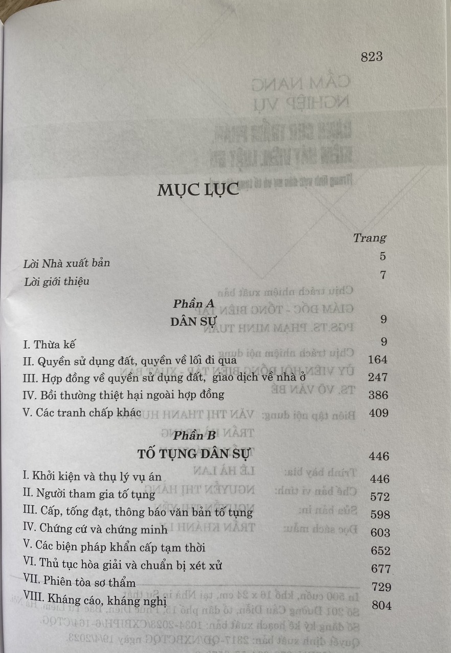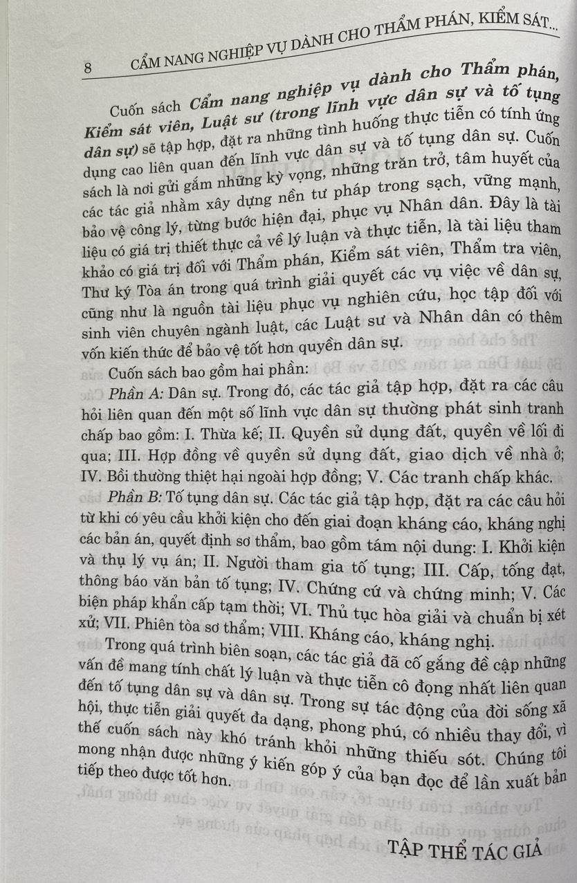 Sách Cẩm Nang Nghiệp Vụ Dành Cho Thẩm Phán, Kiểm Sát Viên, Luật Sư (Dân Sự và Tố Tụng Dân Sự)