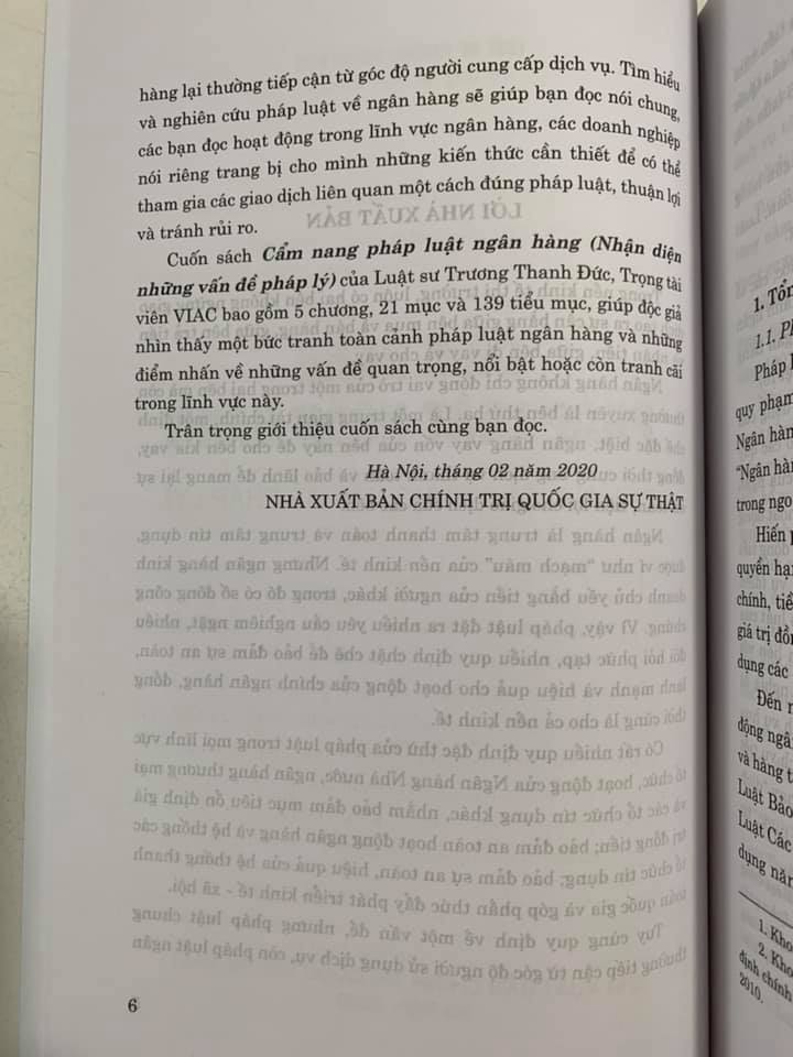 Cuốn sách Cẩm nang pháp luật ngân hàng (Nhận diện những vần đề pháp lý) của Luật sư Trương Thanh Đức, Trọng tài viên VIAC, bao gồm 5 chương, 21 mục và 139 tiểu mục, giúp độc giả nhìn thấy một bức tranh toàn cảnh pháp luật ngân hàng và những điểm nhấn về những vấn đề quan trọng, nổi bật còn tranh cãi trong lĩnh vực này.