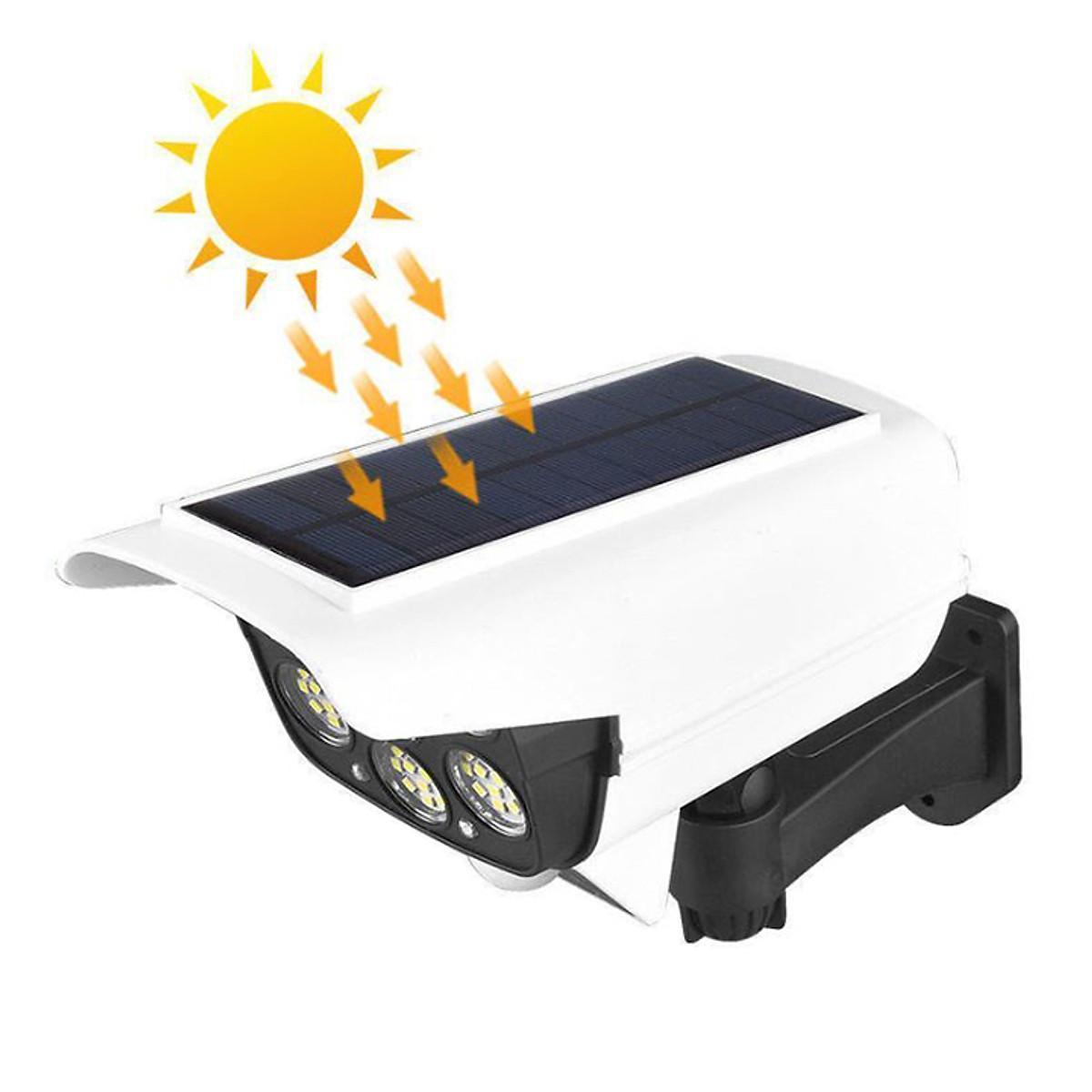 Đèn chiếu sân vườn cảm ứng hồng ngoại năng lượng mặt trời mẫu hình camera quan sát.
