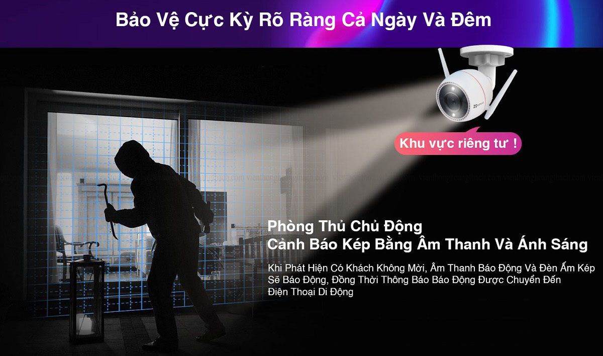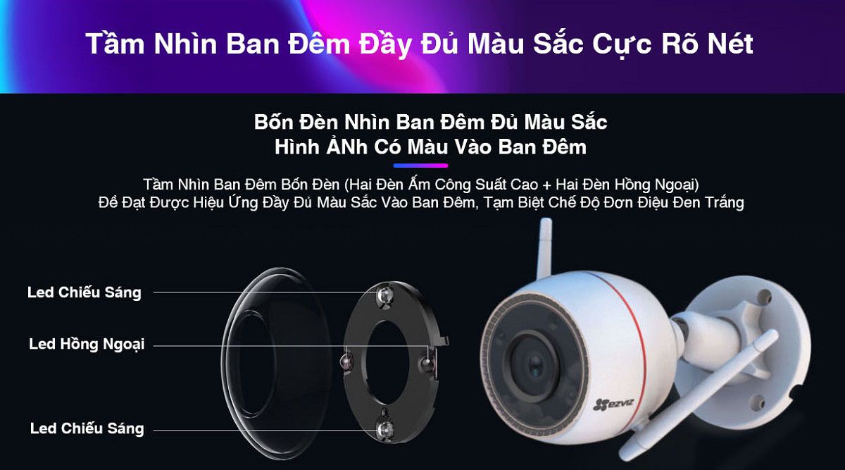 • Camera H3C có 3 chế độ hoạt động: màu ban đêm, hồng ngoại ban đêm, màu thông minh.