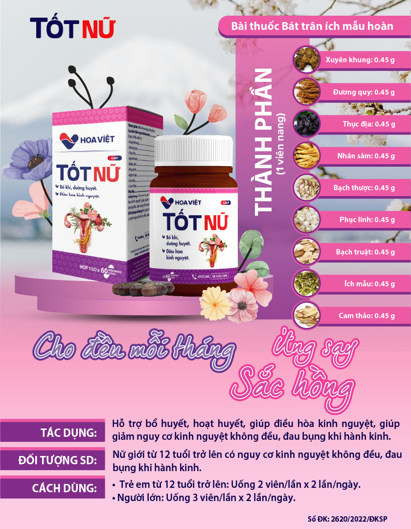 ✨Cân bằng nội tiết tố nữ bổ huyết điều hoà kinh nguyệt Tốt Nữ Hoa Việt hộp 60 viên