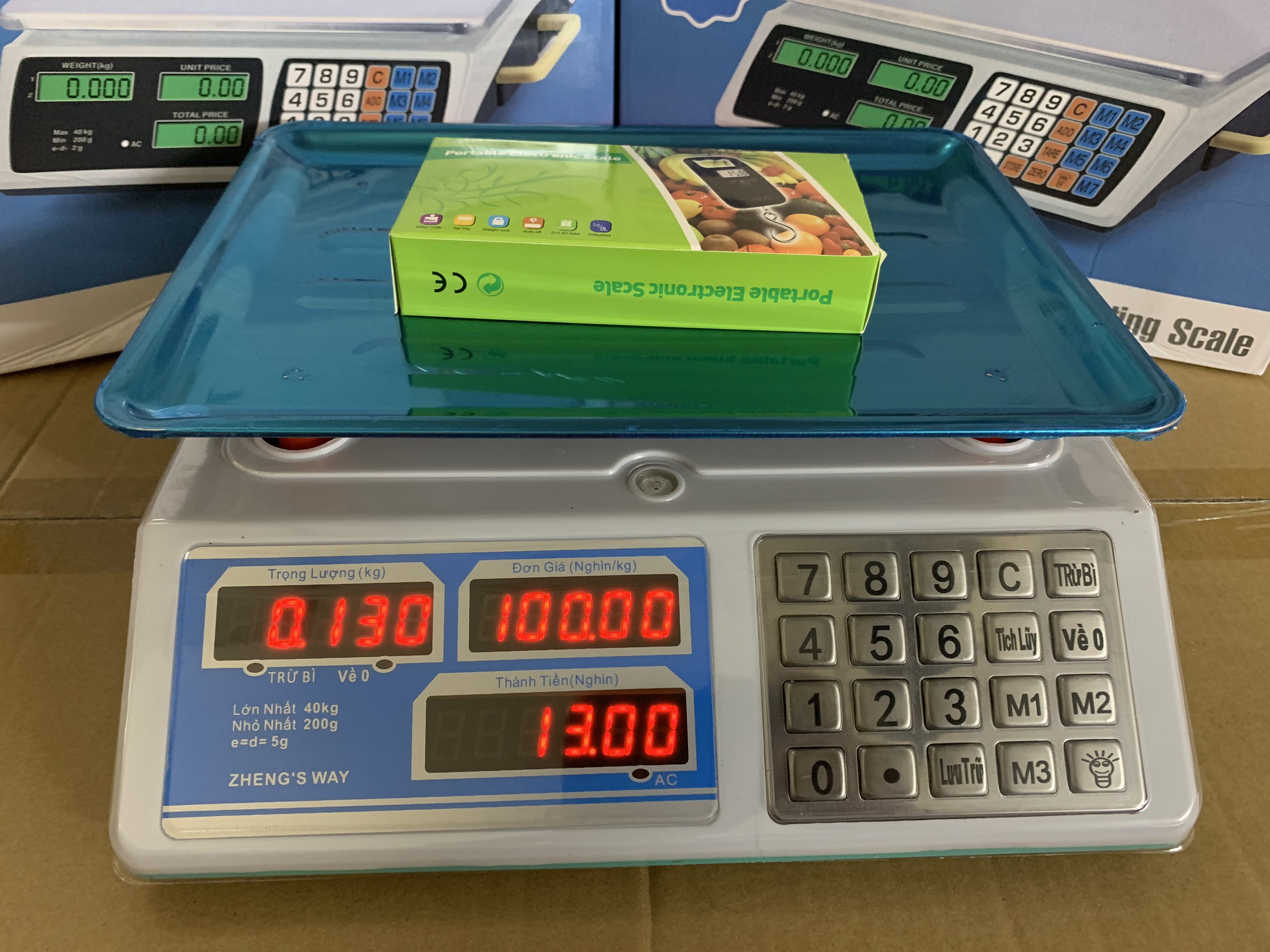 CÂN ĐIỆN TỬ TÍNH TIỀN CAO CẤP 40kg. CÂN ĐIỆN TỬ BÁN HÀNG SIÊU THỊ TẠP HÓA TÍNH TIỀN Là dòng cân tính giá được thiết kế dành cho các cửa hàng hoa quả, thực phẩm, thịt, bánh kẹo. Với mức giá phù hợp, chắc chắn là sự lựa chọn tốt nhất dành cho cửa hàng của bạn. Chức năng chính: cân, tính tiền, trừ bì, cộng dồn, lưu mã, – Mặt bàn cân thiết kế dạng khay trũng – là thiết kế đặc biệt dành cho cân hoa quả. – Có sẵn hai màn hình hiển thị số cân, giá tiền dành cho người bán hàng và khách hàng dễ dàng quan sát. – Màn hình LED đỏ hiển thị giá trị một cách rõ nhất trong mọi điều kiện ánh sáng – Các chức năng tích hợp sẵn trong cân: Trừ bì, cộng dồn giá tiền, tính tiền trả lại – Hiển thị mức pin trên màn hình. – Cân tự động chuyển sang chế độ tiết kiệm pin sau 10s không sử dụng. Giúp giảm thiểu số lần sạc điện cho cân – Thiết bị đạt độ chính xác cấp III theo tiêu chuẩn OIML.   Chi Tiết Sản Phẩm