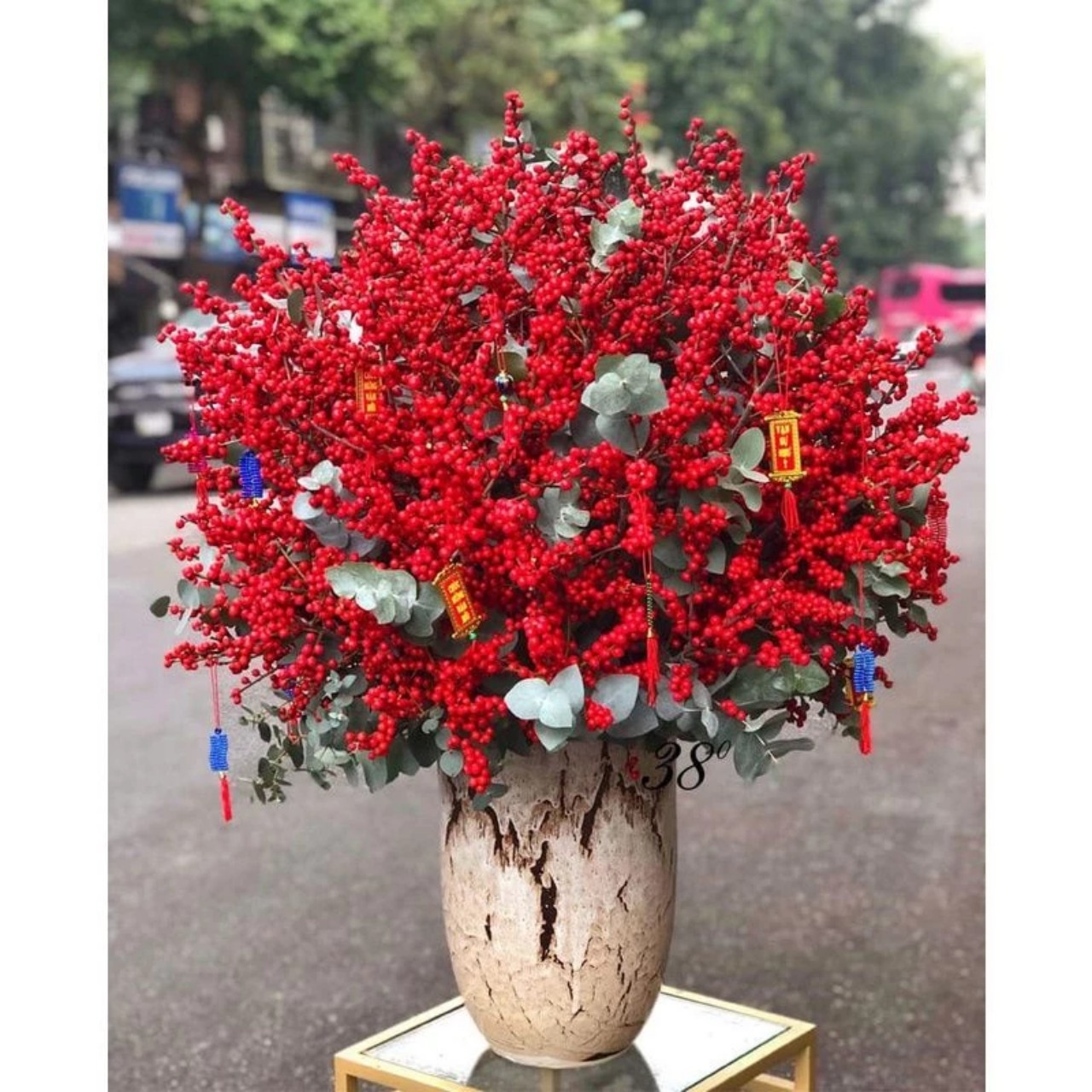 Cành thông trang trí Noel - Size từ 30cm đến 60cm - Cây giả, hoa lụa Decor trang trí nhà cửa  Bình đào đông đỏ giả cắm sẵn - cao 35cm - Cây giả, hoa lụa Decor trang trí nhà cửa