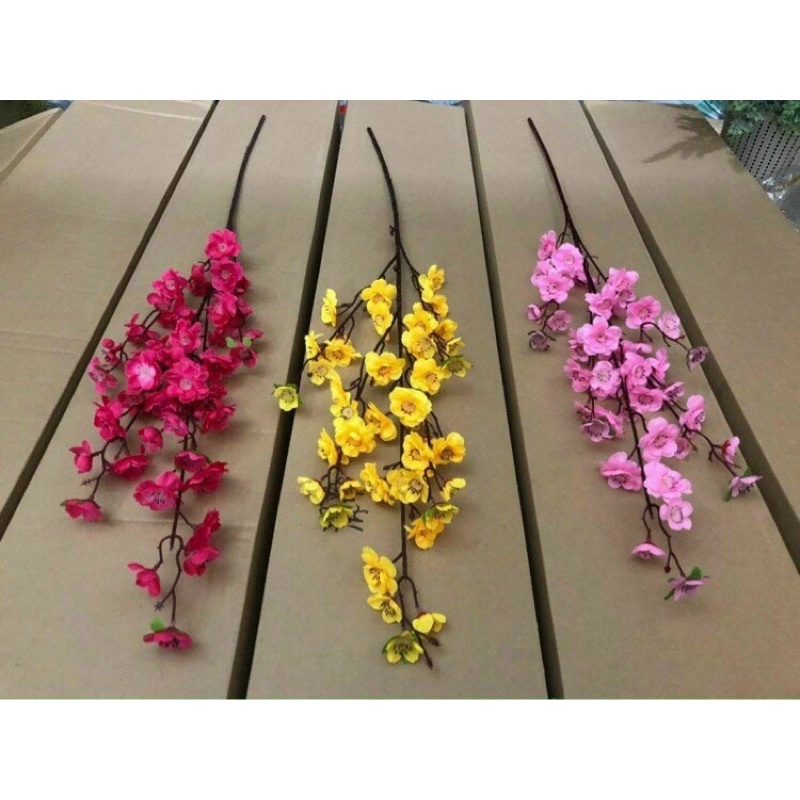 ✨Cành hoa đào, hoa mai giả cành 5 nhánh nhỏ trang trí tết - Cây giả, hoa lụa Decor trang trí nhà cửa