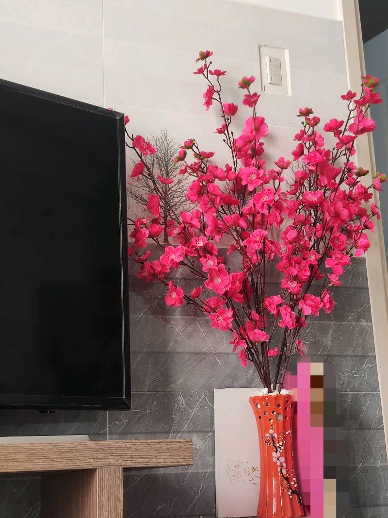 Cành Hoa Đào Giả Trang Trí Tết Màu Hồng Rực Rỡ - Dài 90cm, Đẹp Sang Trọng