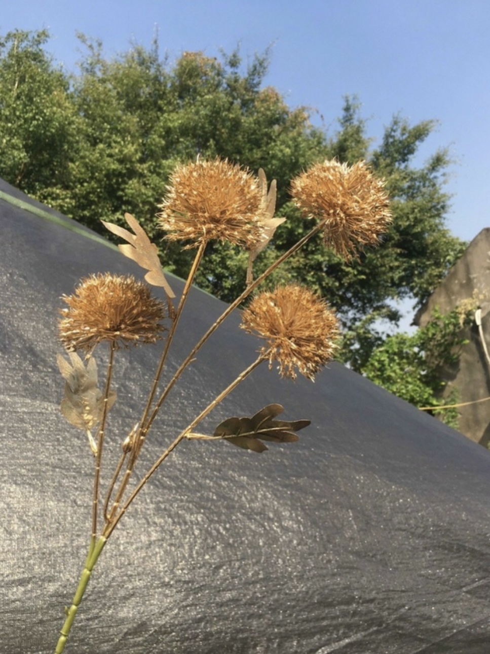 ✨Cành lá rẻ quạt, tai chuột, cành đào đông giả phủ vàng mix đào đông siêu đẹp.