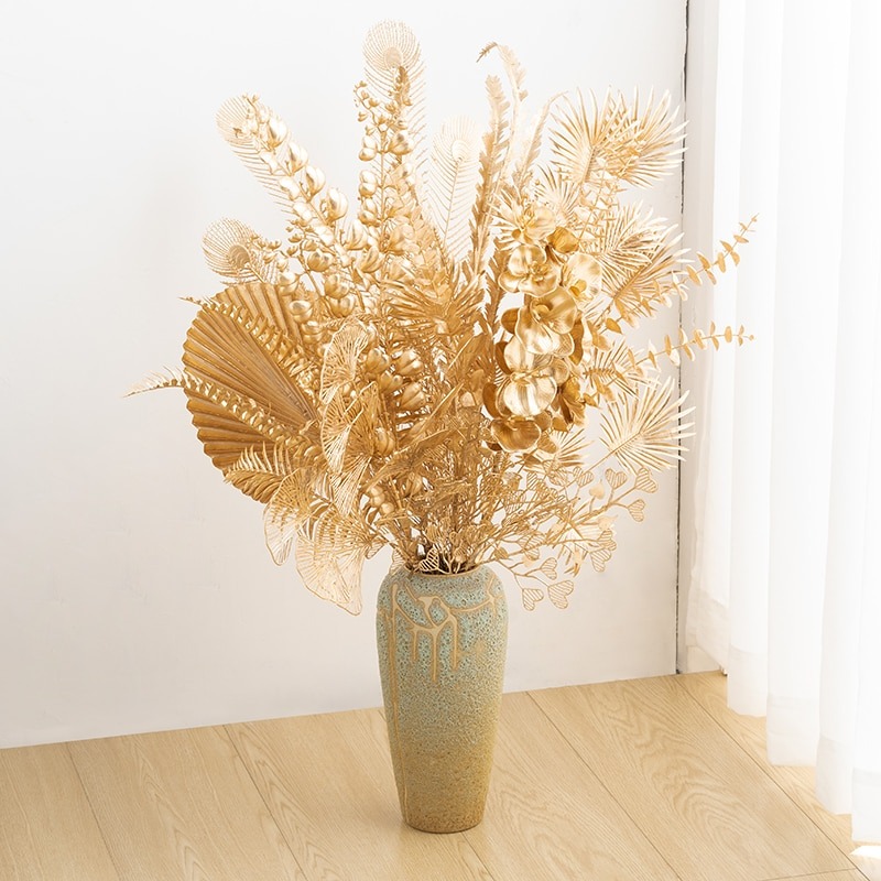 Bình lá giả mạ vàng cao cấp được thiết kế dựa trên công nghệ tiên tiến, từ màu sắc và mẫu mã được thiết kế tinh xảo, bắt mắt và sang trọng, mang đến may